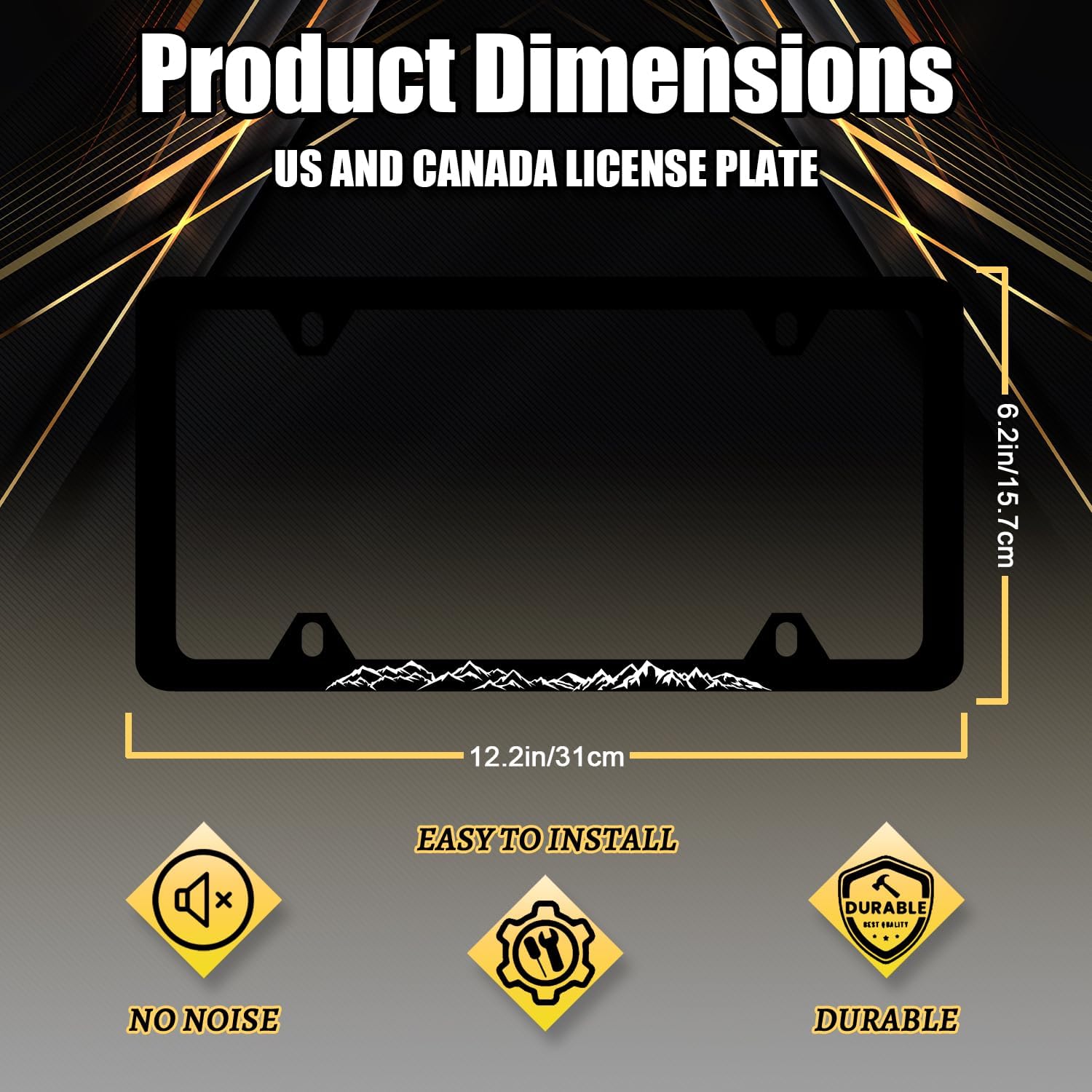 Mountain License Plate Frame Mountain License Plate Holder Stainless Steel Black Funny License Plate for USA Canada 6.3" X 12.3" with 4 Holes and Screws
