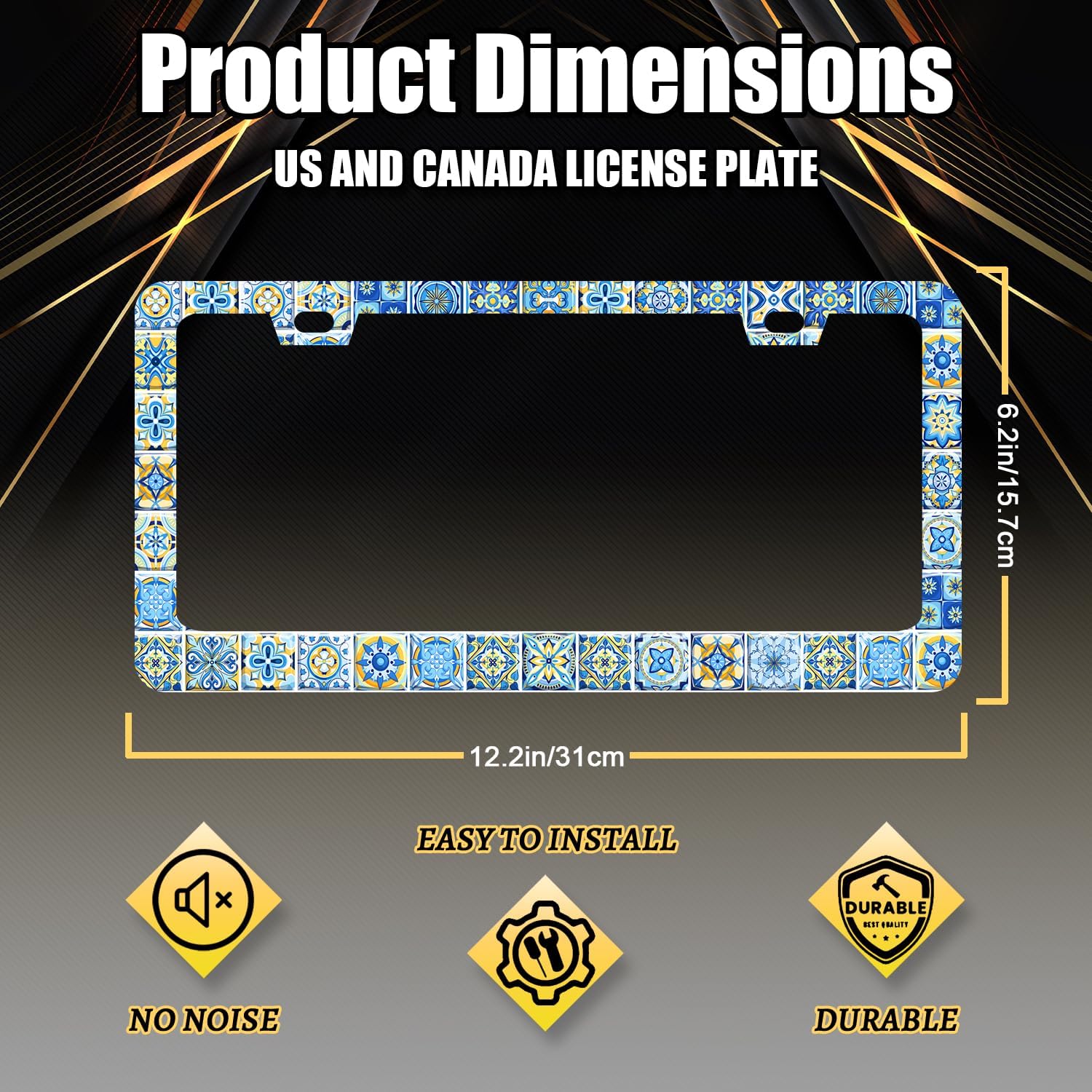 - Size: The size of the license plate frame is 12.3" x 6.3" , it fits all standard size US and Canada vehicle license plates.Fashion design frame fits perfectly on your car license plate.
