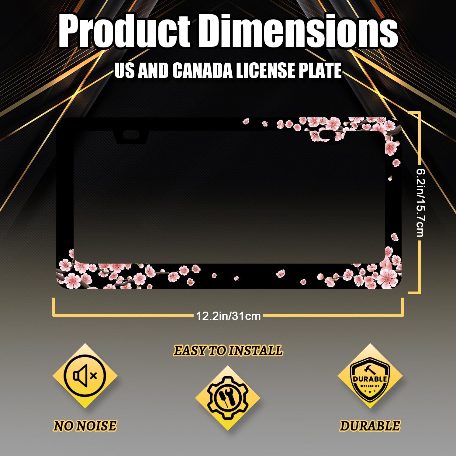 Beautiful Cherry Blossom License Plate Frame Pink Floral License Plate Holder Stainless Steel Colorful License Plate for USA Canada 6.3"X12.3" with 2 Holes and Screws
