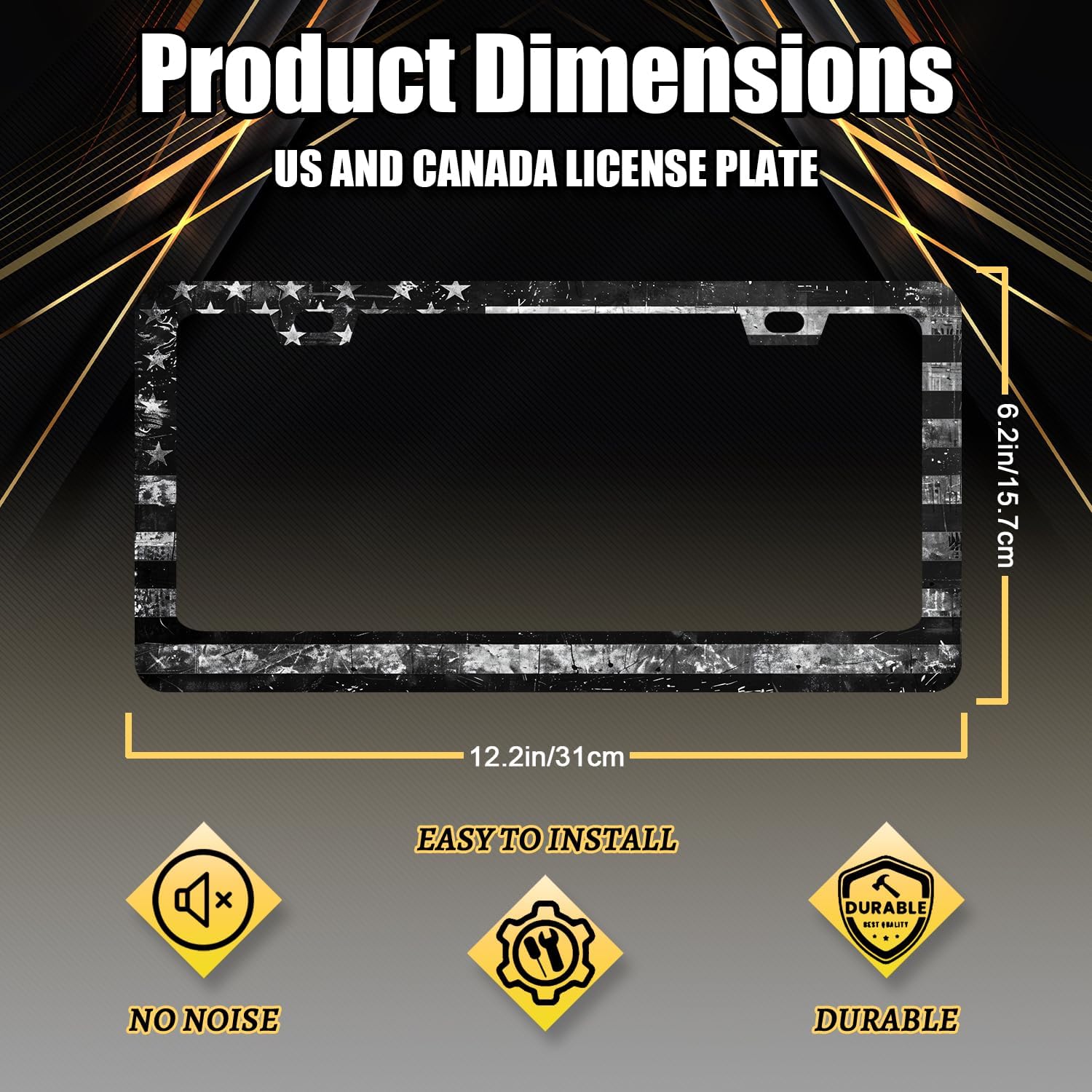 Vintage Black Grey American Flag License Plate Frame Patriotic License Plate Holder Stainless Steel Funny License Plate for USA Canada 6.3" X 12.3" with 2 Holes and Screws