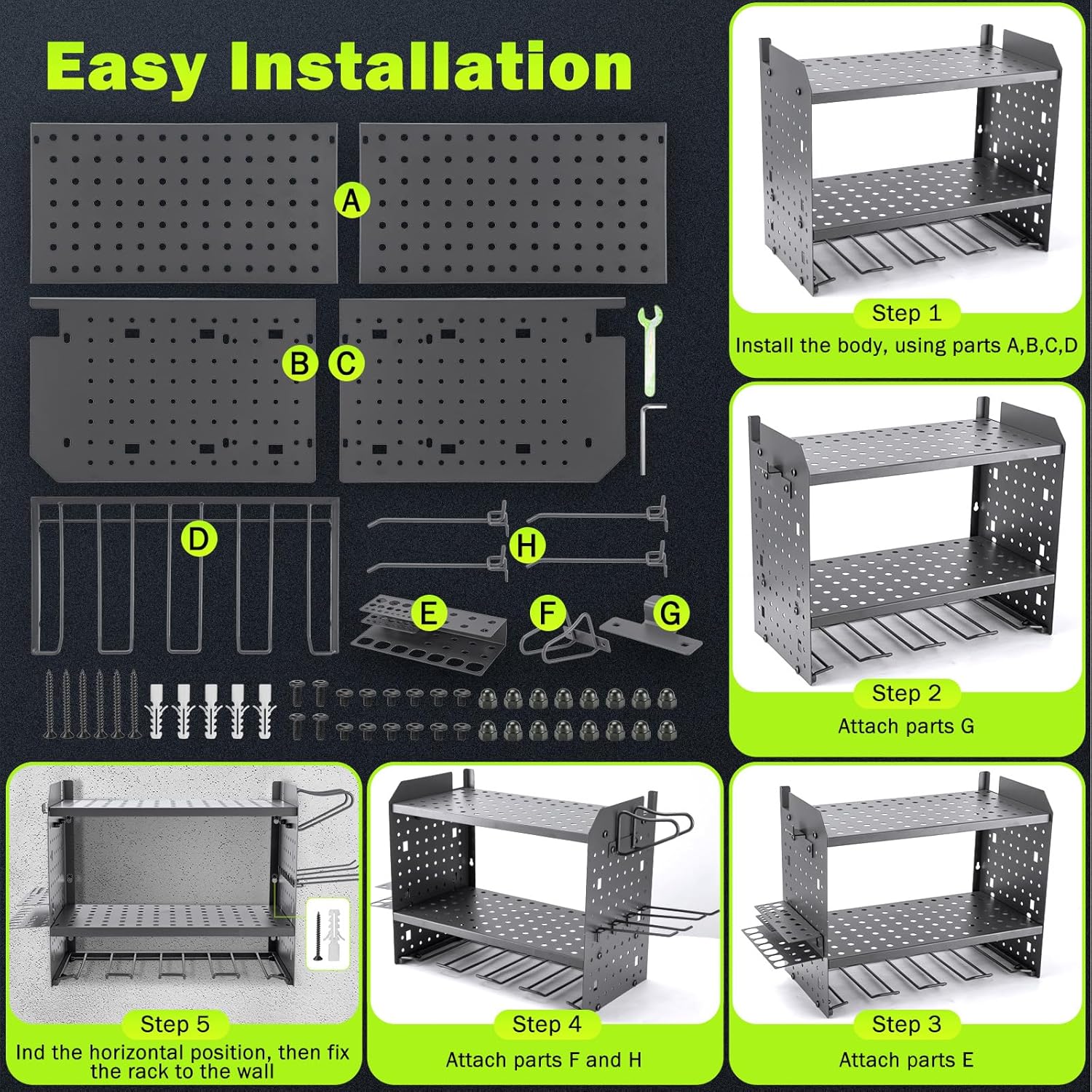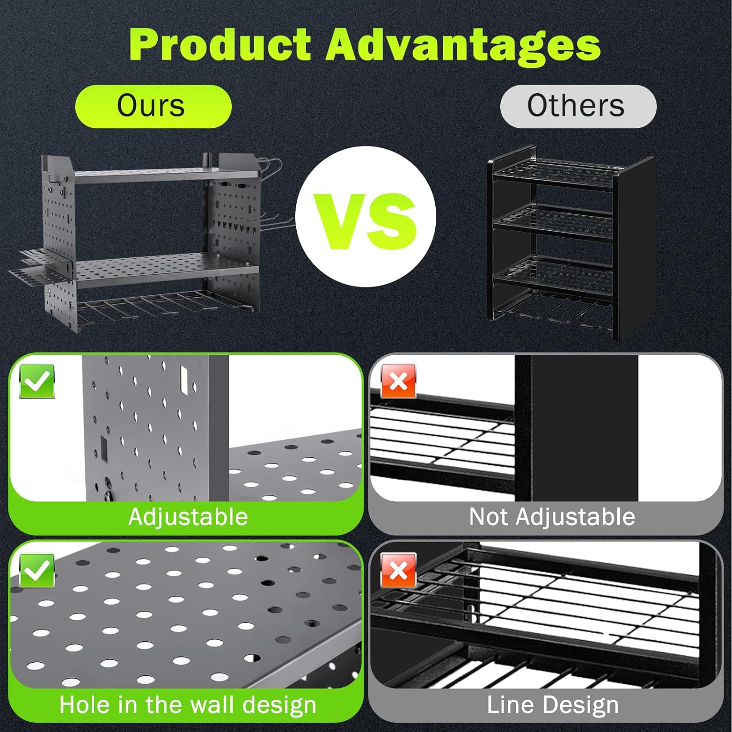 - ✔ 【Industrial-Grade Metal Cast Construction】 – Unlike flimsy competitors, our rack features one-piece pressed metal side panels and reinforced support plates for unmatched durability. The solid metal structure provides 5X stronger load-bearing capacity than standard welded racks. Plus: Customize your layout by drilling additional holes for DIY configurations to perfectly fit your unique tool collection!