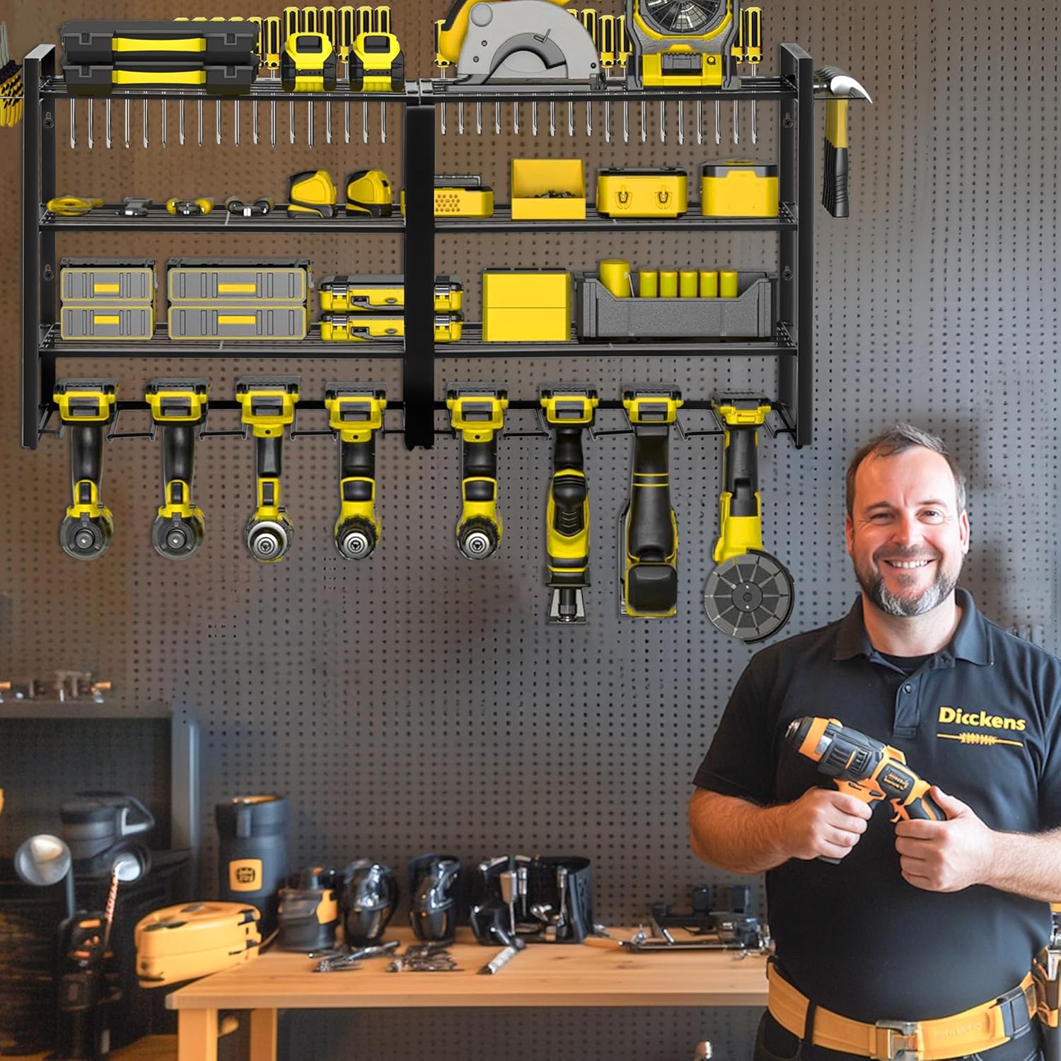 - 【Space-Smart Design】 The 4-tier vertical system maximizes storage with dedicated compartments for drills, saws, and tools—keeping items organized without sacrificing floor space.
