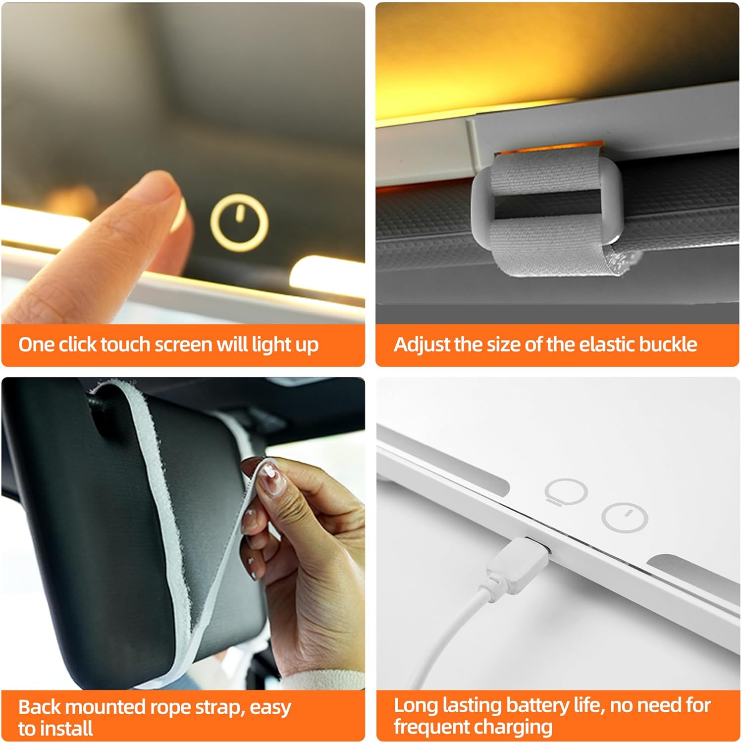- 2 Pack car mirror vanity Rechargeable Led car vanity mirror with 3 Light Modes,Dimmable Touch Screen,Side with triple magnification mirror image