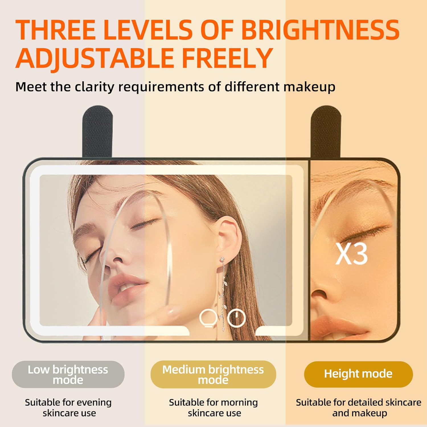car mirror vanity Rechargeable Led, 3 Light Modes,Dimmable Touch Screen,Side with triple magnification mirror image (1)