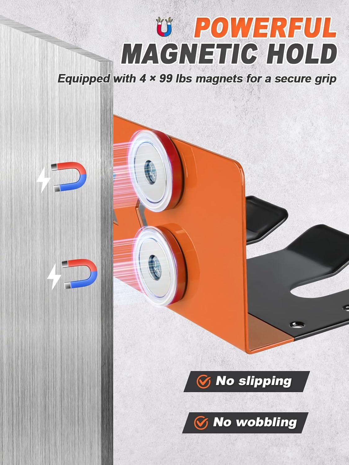 - Heavy-Duty Load Capacity: Made of thick powder-coated steel and supported by strong magnetic force, this holder supports up to 10kg without bending or sliding. A solid choice for auto body shops, garages and daily use