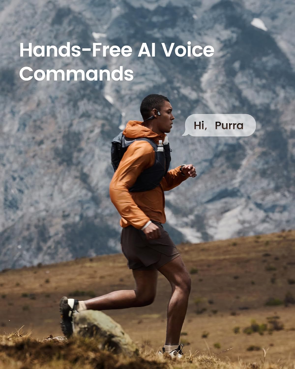 Purra Run Bone Conduction Sport Headphones, Open-Ear Bluetooth Headphones with Mic, IP67 Waterproof, Deep Bass, Voice Control, Secure Fit for Running, Cycling, and Workouts (Black)