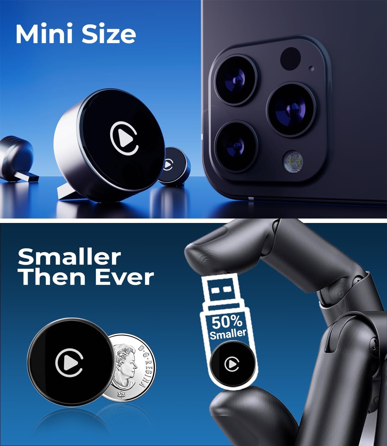 - ๐ Revolutionary Compact Mini Design, 50% Smaller โ The ultra-compact and sleek Carlizem wireless CarPlay adapter fits almost flush in your carโs USB port, blending seamlessly into your vehicleโs interior for a clean, minimalist look without clutter. With our upgraded, nearly invisible adapter, effortlessly add wireless functionality to your car's original Apple CarPlay and enjoy wireless access to CarPlay features like music, maps, calls, voice assistance and more.