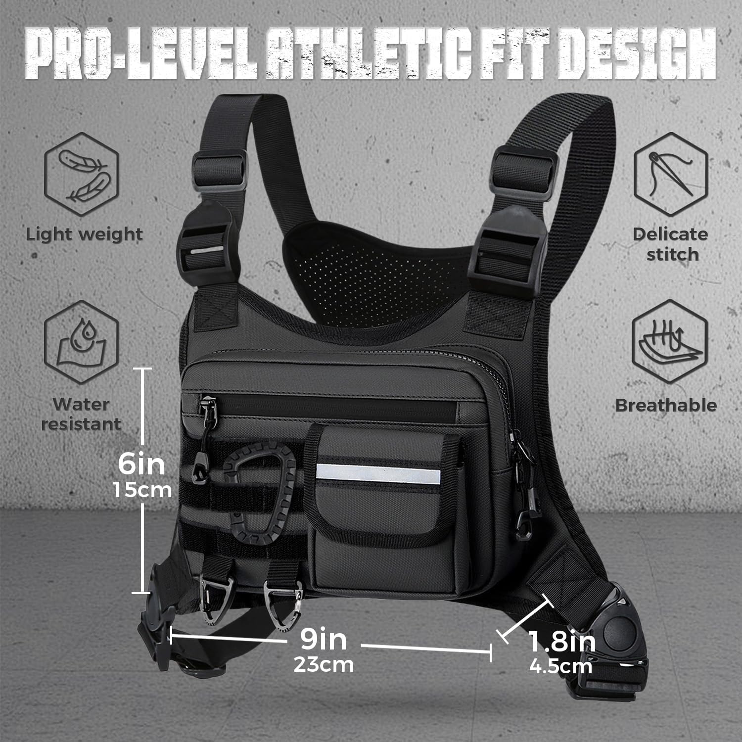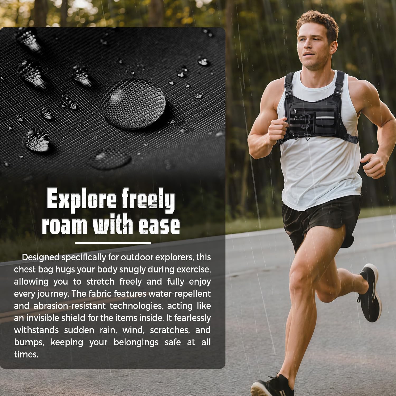 - 1) Outdoor Chest Bag For Men, Tactical EDC Chest Pack With Built-In Phone Holder, Lightweight Chest Rig Pouch For Workouts, Running, Cycling, Hiking