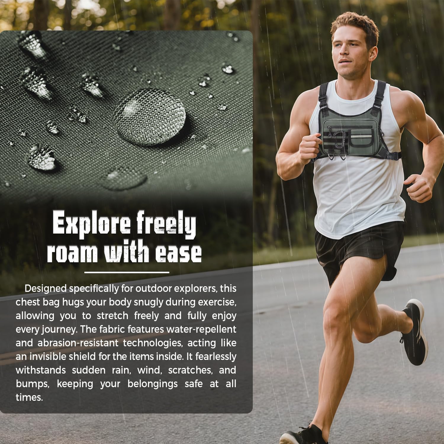 - 1) Outdoor Chest Bag For Men, Tactical EDC Chest Pack With Built-In Phone Holder, Lightweight Chest Rig Pouch For Workouts, Running, Cycling, Hiking