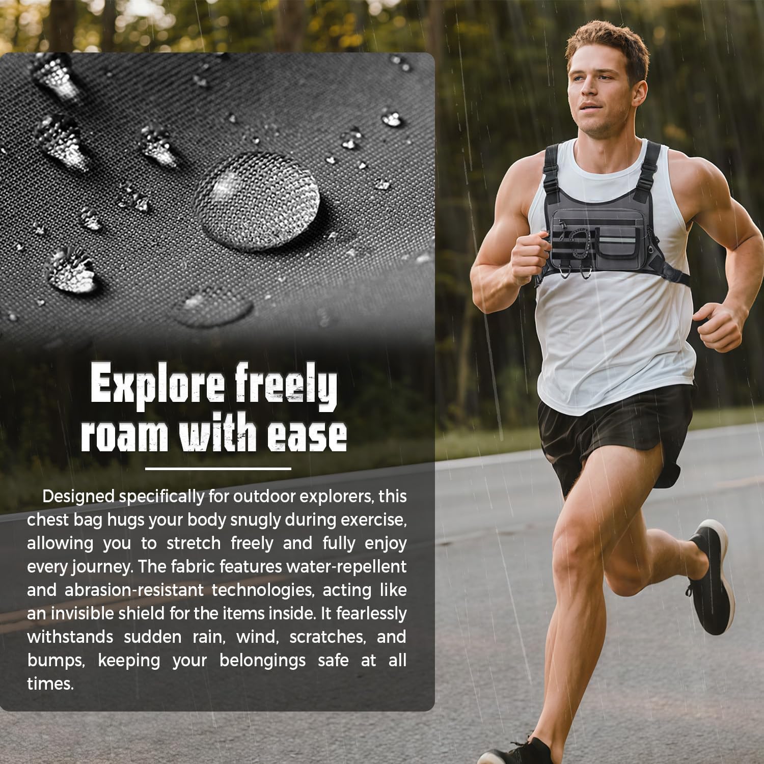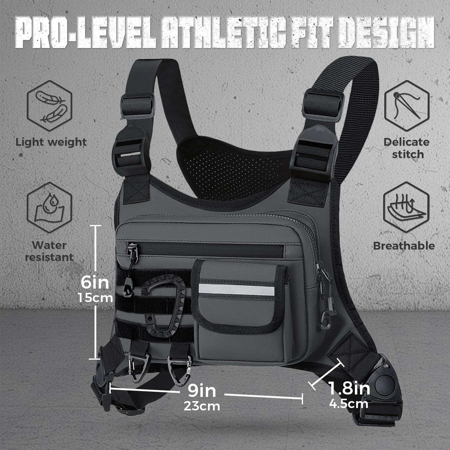 • 4) Our tactical chest backpack is made of durable nylon, very sturdy, suitable for running, hiking, fishing, hunting, wild adventure