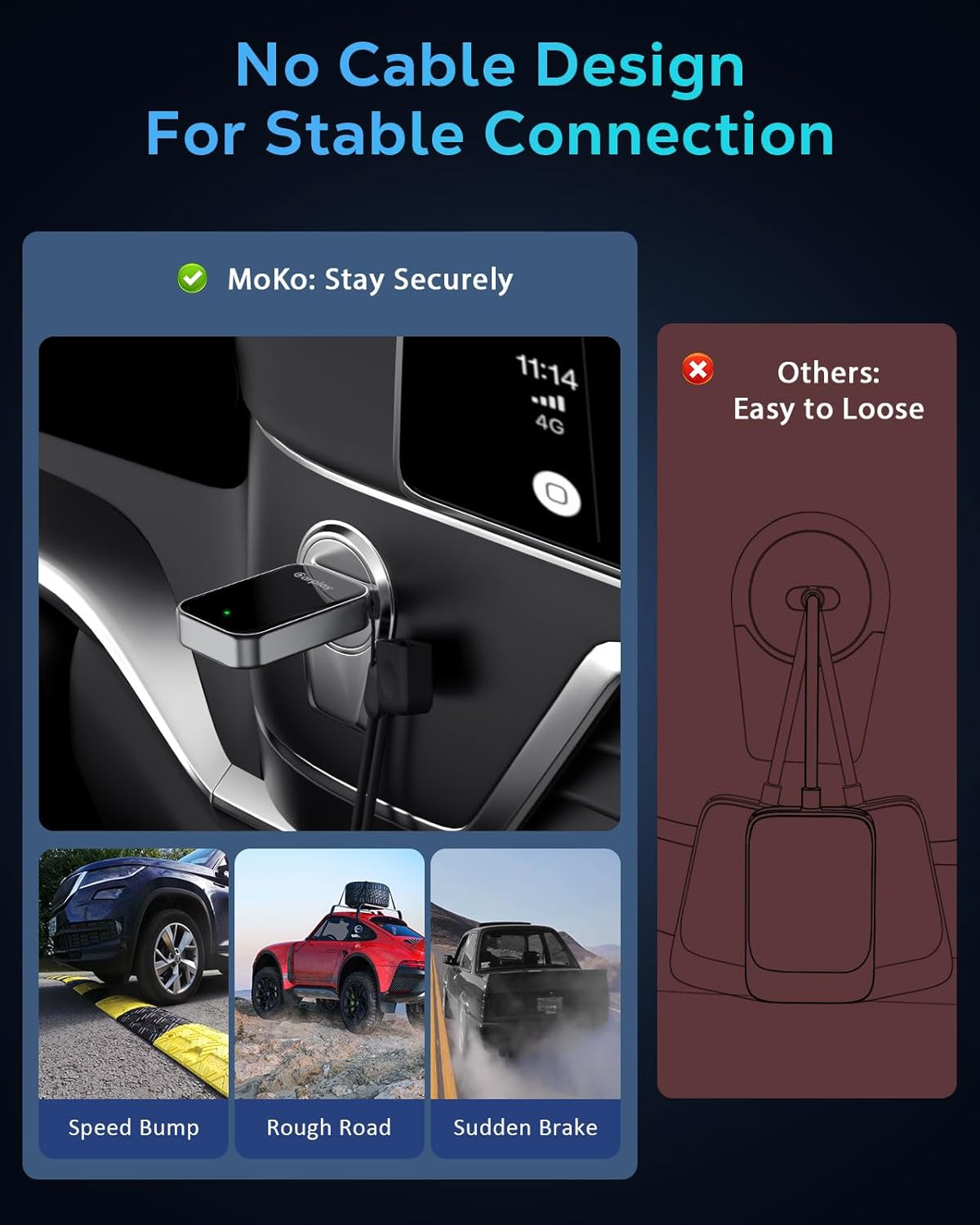 - Plug and Play, Superior Stability: Say farewell to cluttered cables and unreliable connections with our CarPlay wireless adapter. Featuring an innovative cable-free design, it eliminates common issues like frayed cables and sudden disconnections during bumpy rides. Plug it in once - the adapter auto-connects when you start your car, protecting your phone's charging port from daily wear and enabling you to enjoy instant access to CarPlay features without constant plugging.