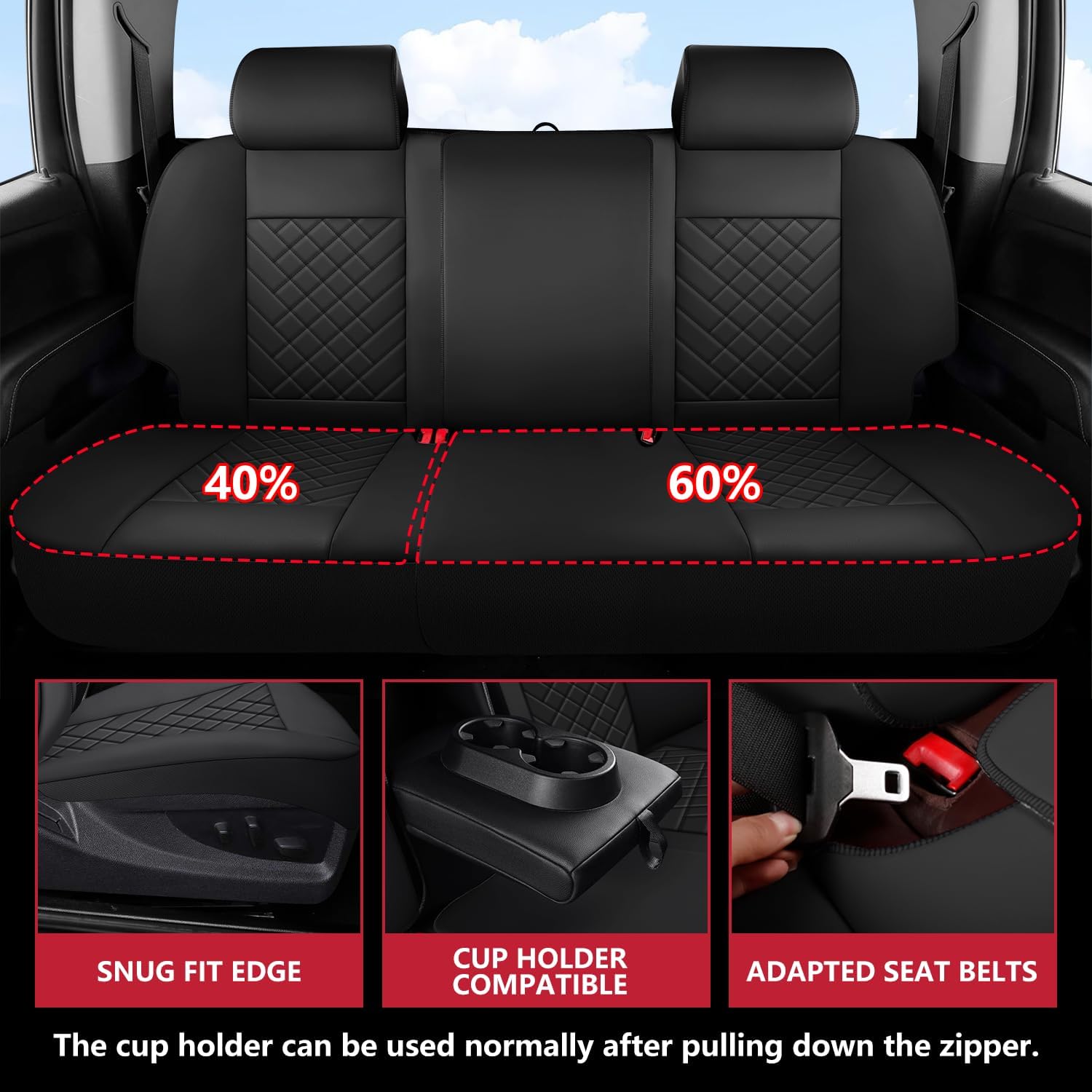 BABYBLU Chevy Chevrolet Silverado GMC Sierra Car Seat Covers Fit 2007-2023 2024 2025 1500/2500HD/3500HD (Black, Full Set)