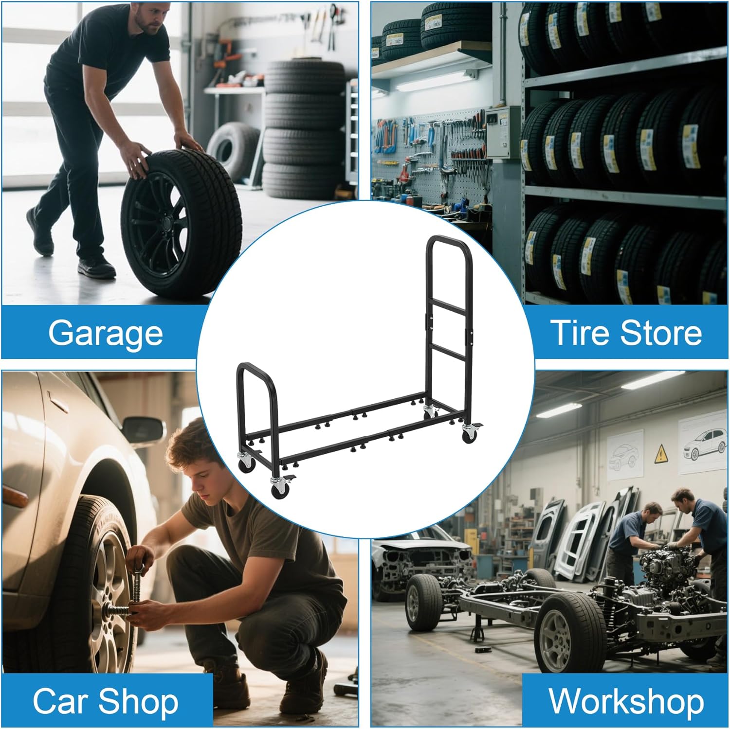 - Stable Structure: The structural design of the mobile tire rack features wear-resistant and corrosion-resistant and ensures structural stability with a maximum load of 330LBS; Easy to assemble, durable and safe