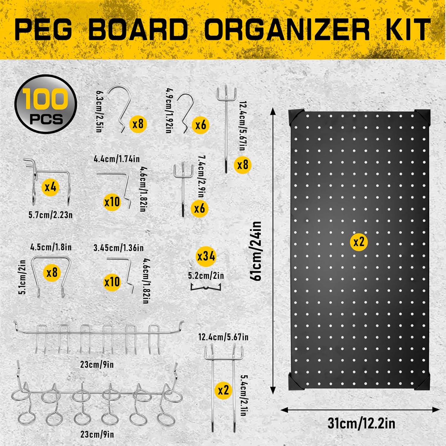 - Engineered as a pegboard wall organizer, this kitβs peg board hooks for hanging securely hold tools up to 15lbs, ideal for workshops and garage organization.