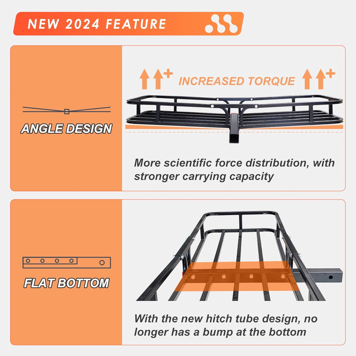 MeeFar Hitch Mount Cargo Carrier Basket 53" x19" x 5"+Waterproof Cargo Bag (51" x17"x 18"), Hauling Weight Capacity of 500 Lbs fit on 2 Inch Receiver with Hitch Stabilizer,Net and Straps