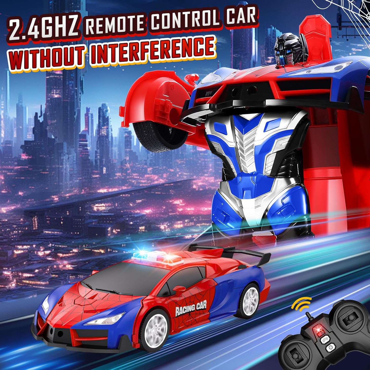 Remote Control Car for Boys 4-7, 2.4GHz RC Car 1:18 Scale, One-Button Transforming Toy with 360° Spins, LED Lights