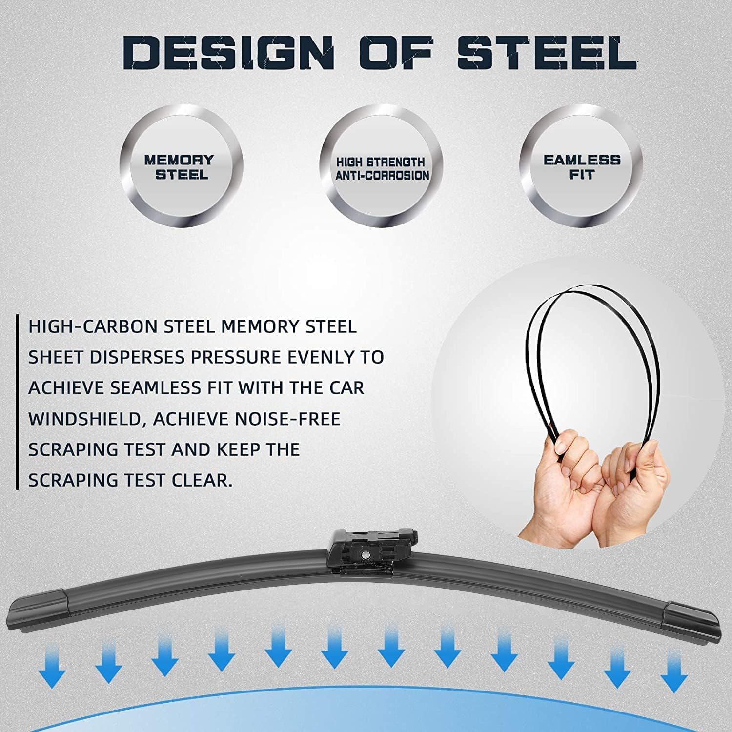 - ALL- WEATHER PERFORMANCE:The patented 1,500 pressure points on the blade deliver the quietest performance. Higher visibility and lower-DB wipe ensure the driving safety.