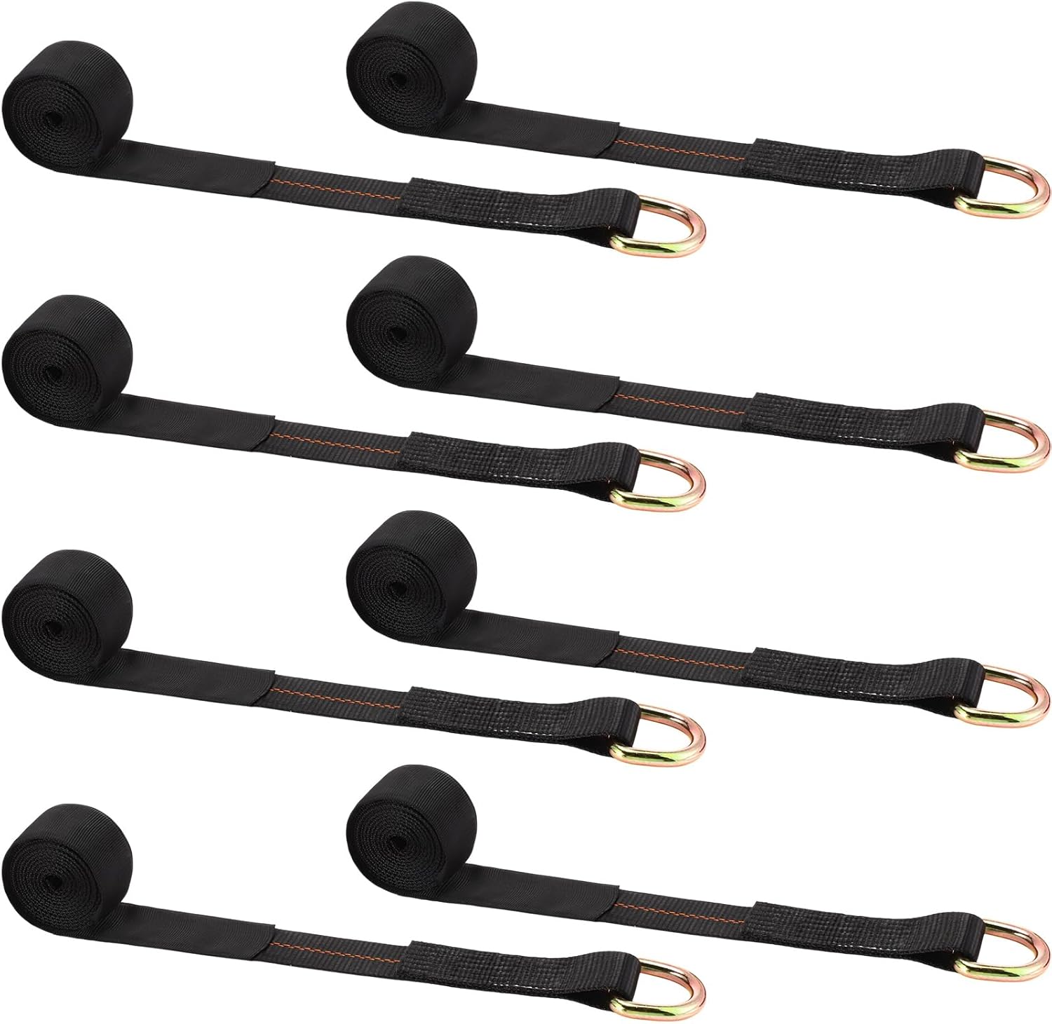 8Pack 2'' X 8ft Tow Truck Straps Lasso Wheel Lift Straps Lasso Tow Strap with D Ring 11, 000 Lbs Break Strength Auto Tie Down Auto Hauler for Trailer Truck Tie(Black)
