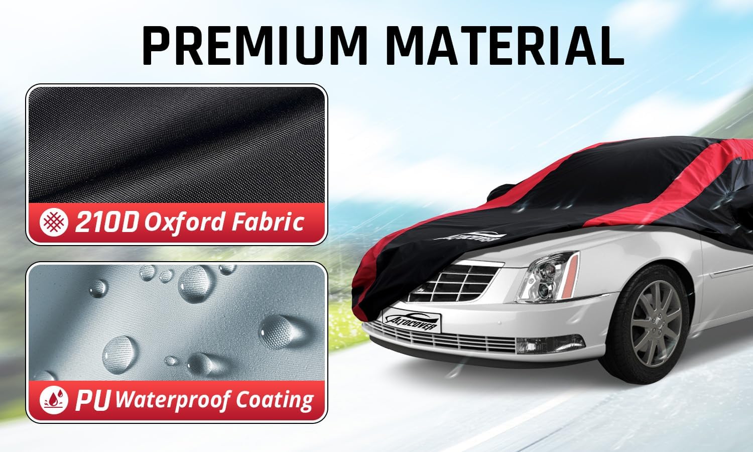 Car Cover Waterproof All Weather with Red Strip Design, Custom Fit for DTS(2006–2011), XTS(2013-2019), CT6(2016-2020), DTS Accessory with Door Zipper & Windproof Straps