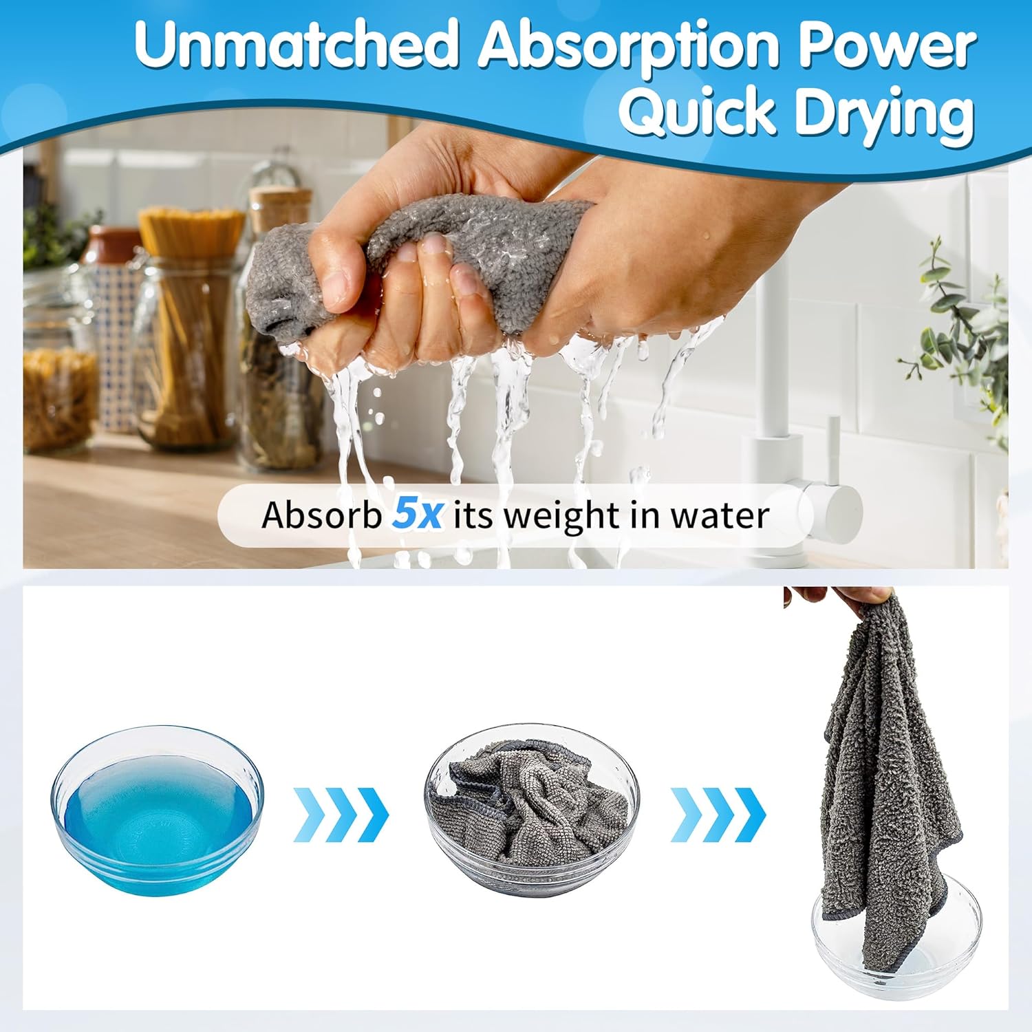 - HIGHLY ABSORBENT & WIDE APPLICATIONS: These 16Γ12 inch microfiber cleaning cloths have outstanding water absorption abilities, surpassing that of cotton cloths, ensuring faster drying. Additionally, the larger and thicker design allows you to cover a wider surface area while cleaning, making it more efficient and effortless.
