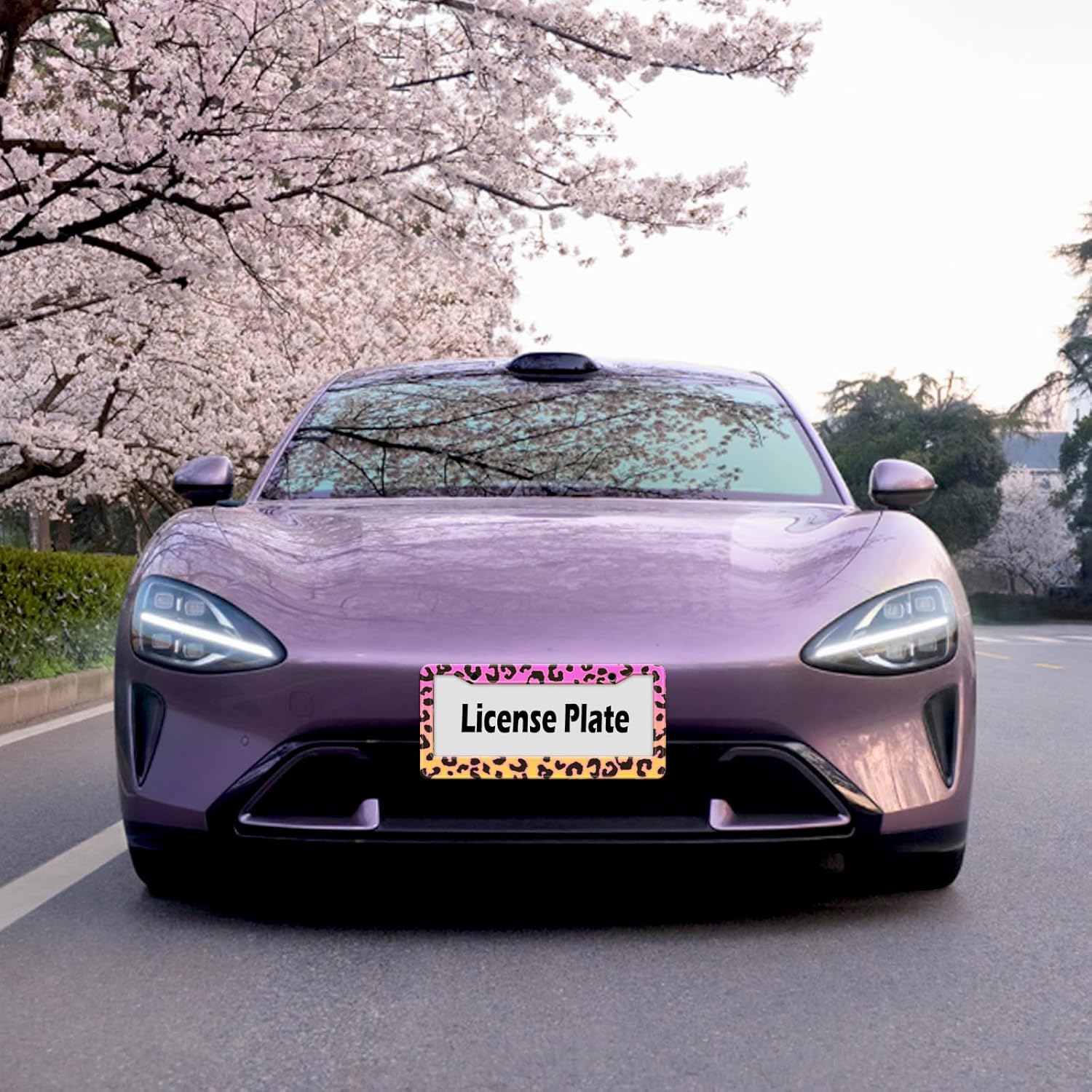 Gradient Color Leopard Print License Plate Frame Cheetah Print Tags Frames Holder Covers Metal Aluminum Rustproof Cute Car Accessories for Us Canada Standard Women Men 2 Holes with Screw Caps