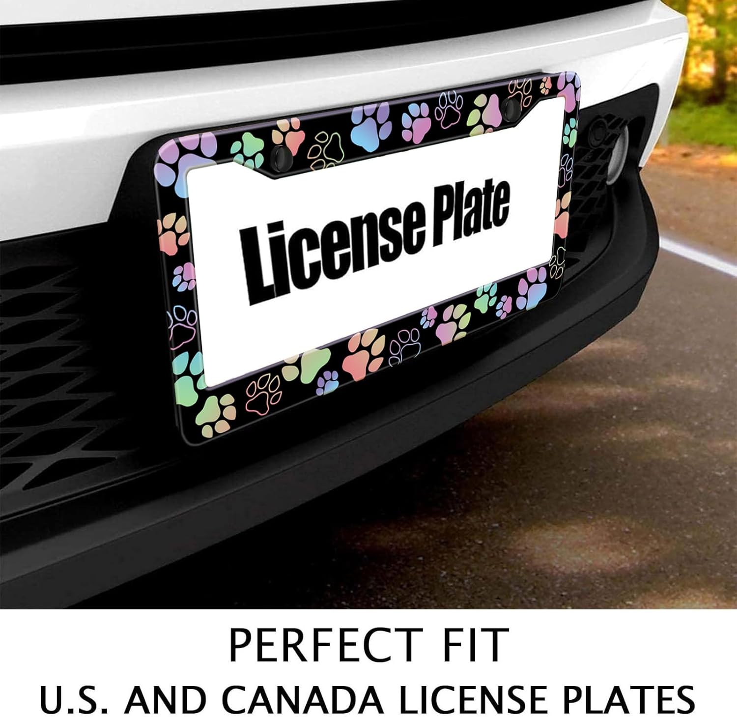 Dog Paw Car License Plate Frames, Colorful Pet Paw Printed License Plate Holder Cover, Metal Aluminum Rustproof Car Accessories for US Canada Standard Women Men 2 Holes with Screw Caps