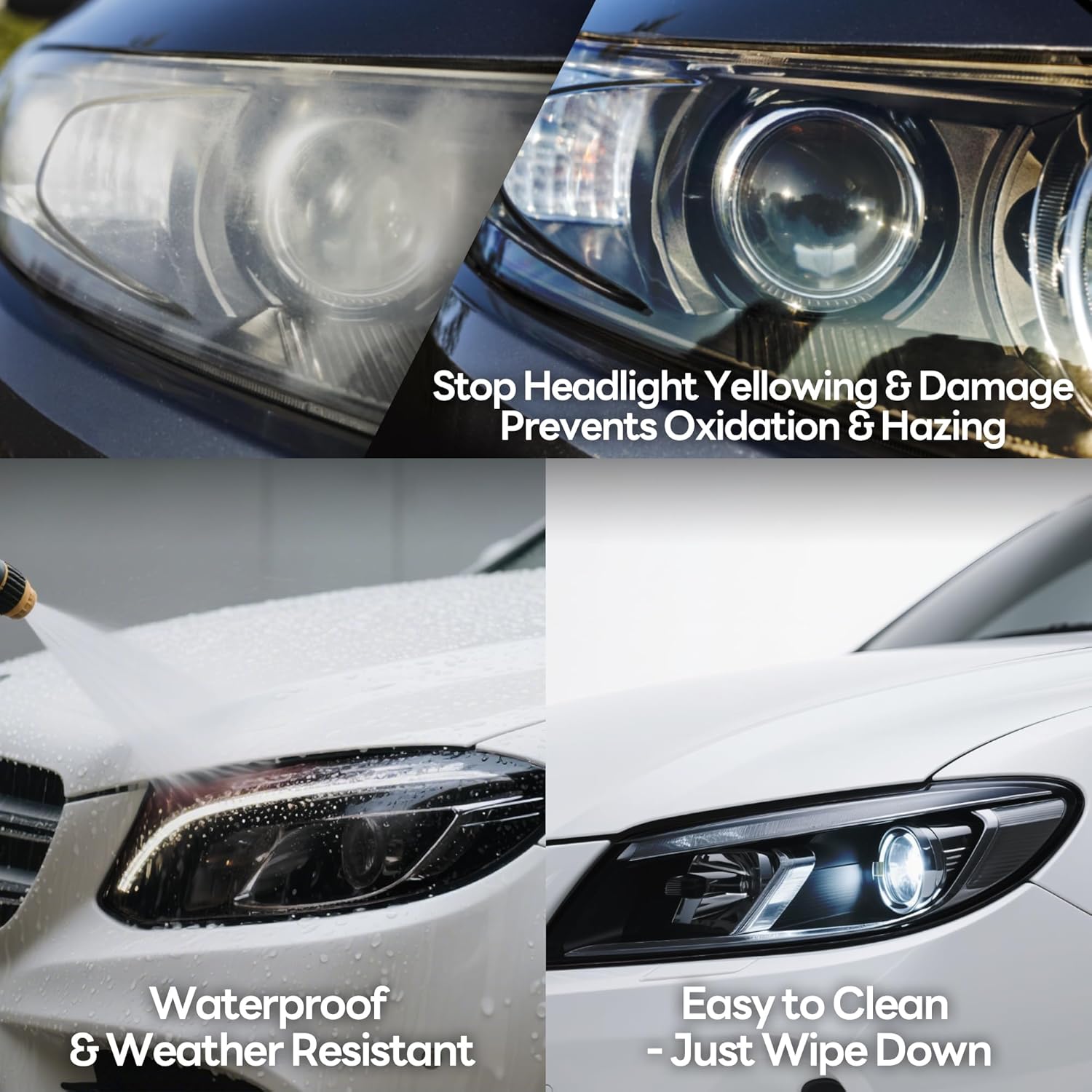 - [Non-Damaging Adhesive] Premium clear adhesive guaranteed not to harm your headlight's factory coating or plastic lens during application or future removal. Dry application leaves no sticky liquids residue behind.