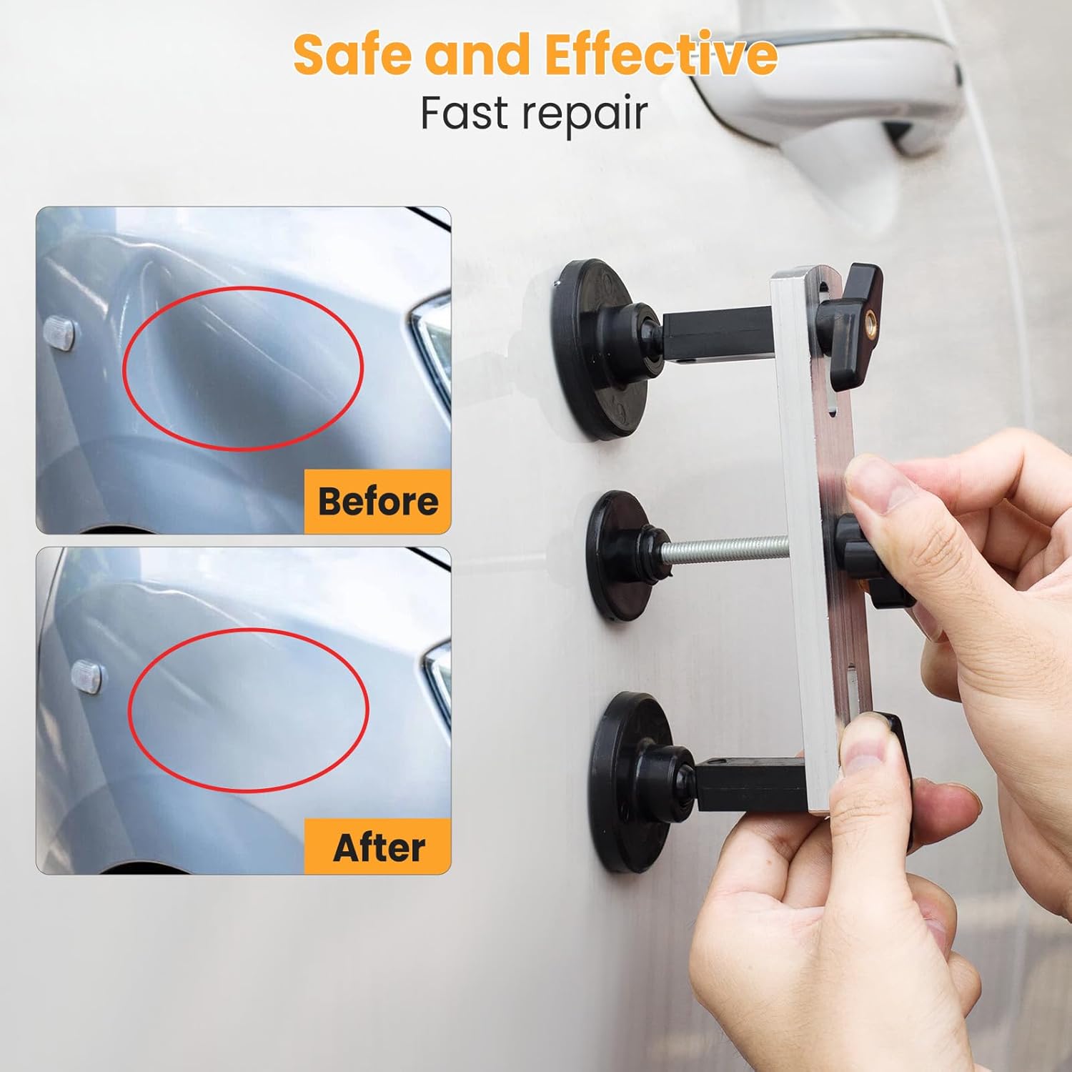 - Suitable for All Dent Sizes:Our dent removal tool for cars includes 3 repair tools. 2-in-1 T-Bar puller for large dents, the bridge puller for medium dents, and the gold lifter for small dents. The stainless steel 2-in-1 sliding hammer dent puller can be combined into two different lengths for various repairs. Equipped with 62 pull tabs, it can repair dents of any size or shape