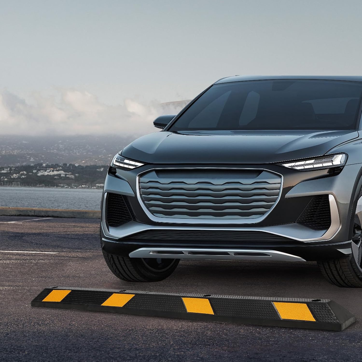 - High Visibility Reflective Design: Featuring bright yellow reflective strips, these parking curbs enhance visibility for drivers at any time of day, providing a valuable aid for new or cautious drivers while preventing vehicle damage during parking
