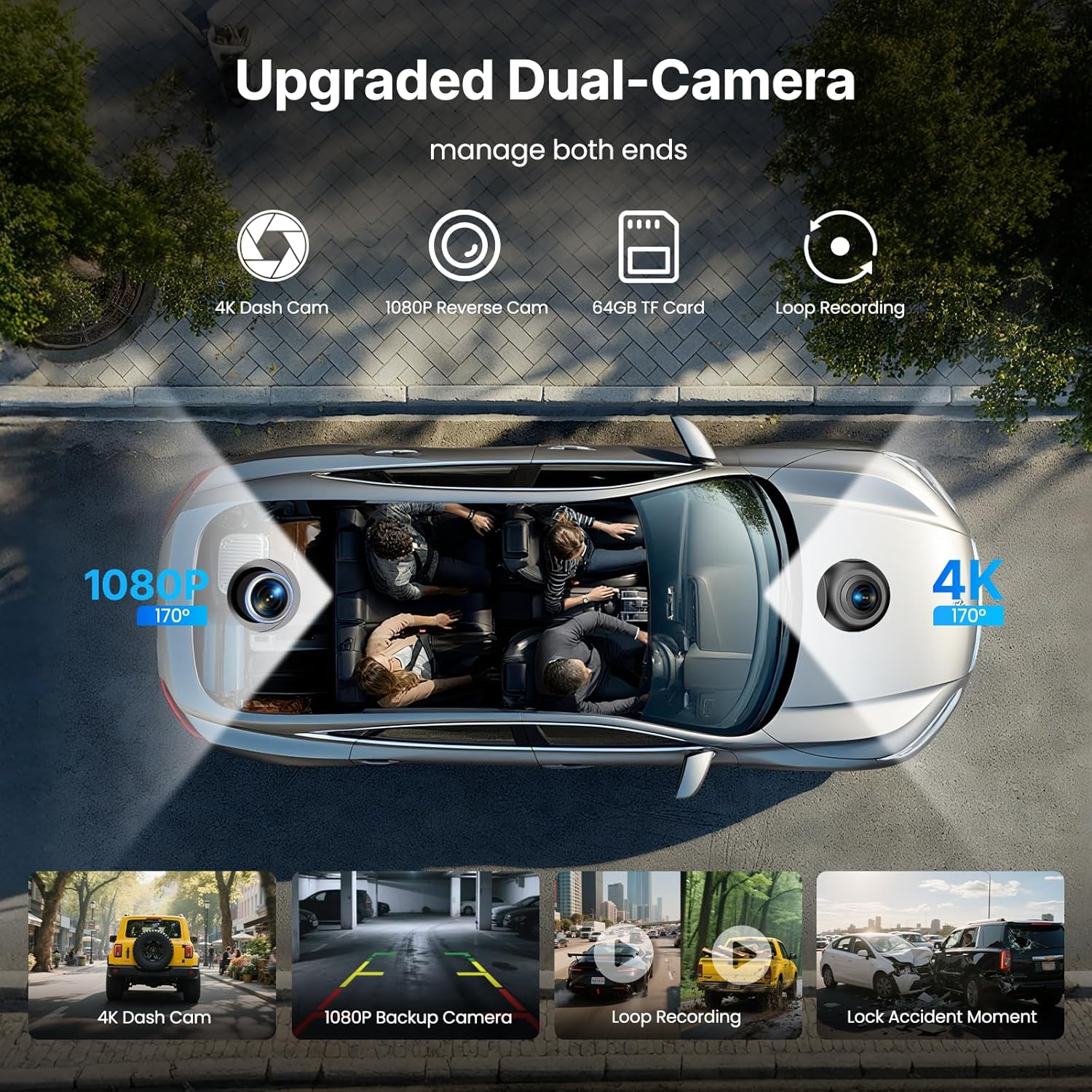 - 【Dual Dash Cam Recording】- for apple car play features integrated 4K front + 1080P rear cameras capturing simultaneous views. Includes 64GB premium memory card for complete, high-definition trip documentation. Smart motion detection and emergency lock ensure you never lose critical footage. Relive important moments via mobile playback.the car play have Wide-angle rear camera with night vision and parking guidelines for tight spaces.