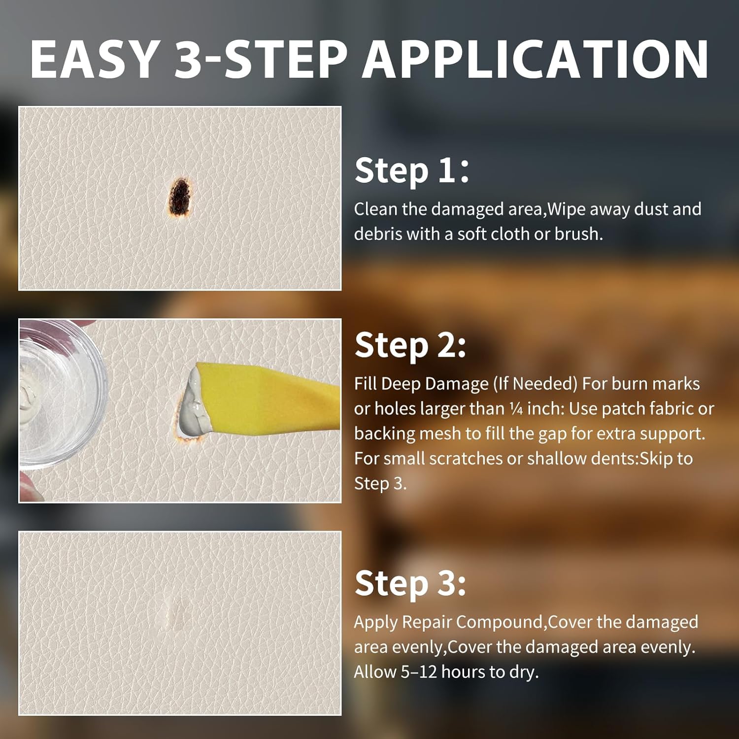 - Easy to Use:leather repair kit includes all necessary tools with a vividly illustrated manual.designed for effortless use, our step-by-step guide requires no professional experience - even first-time users can achieve professional results immediately.