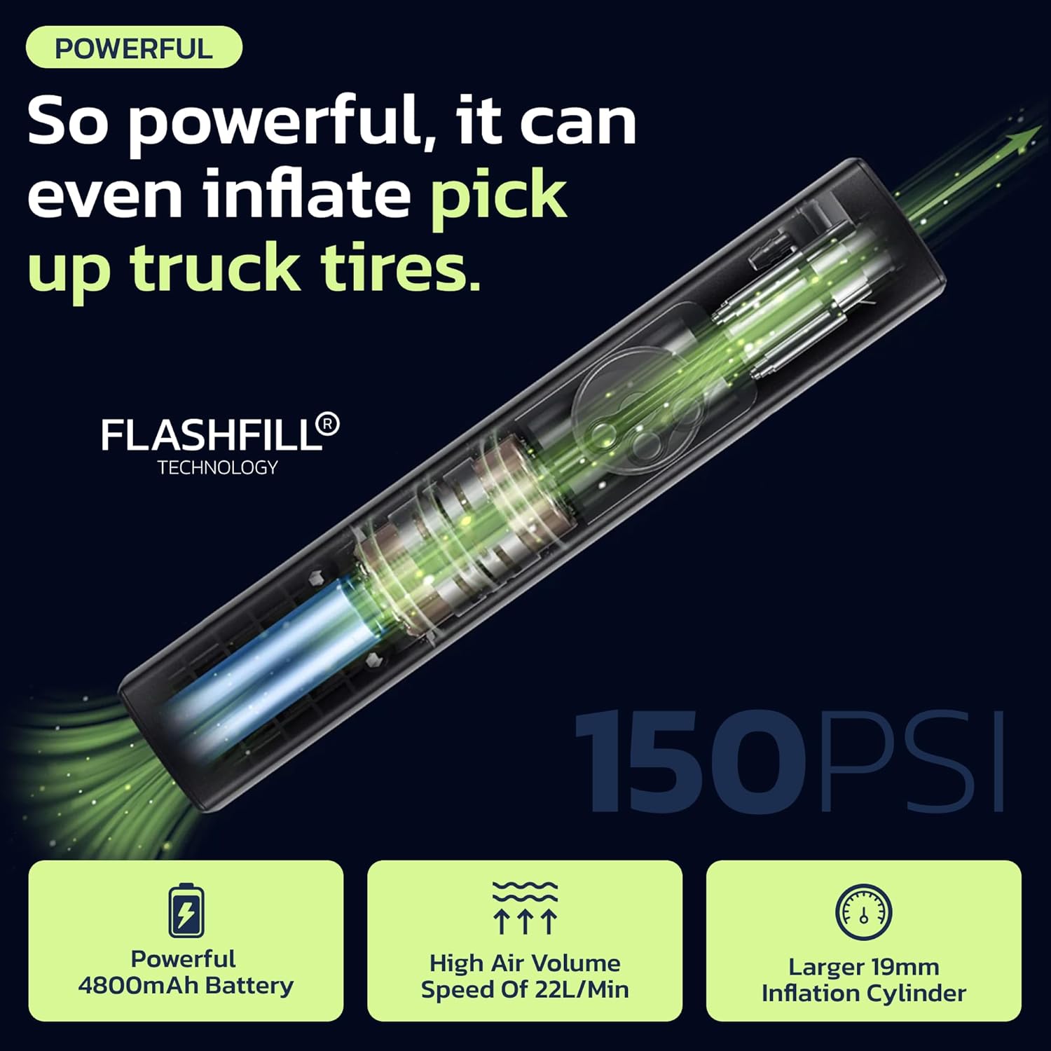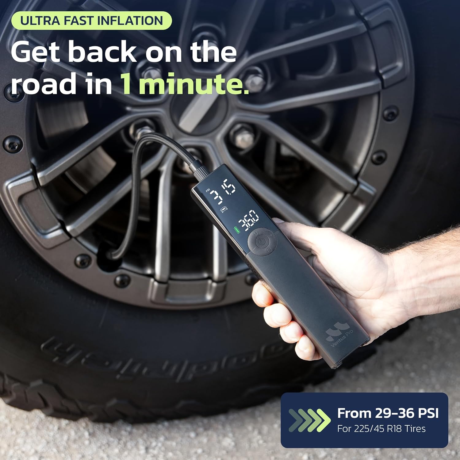 - ULTRA-FAST INFLATION IN 1 MINUTE β This powerful 150 PSI tire pump inflates car, motorcycle, SUV tires in just 60 seconds. Also perfect for Pick up trucks, off-road vehicles, sedans, trailers, and e-bikes when plugged into the included 12V car outlet for continuous power.