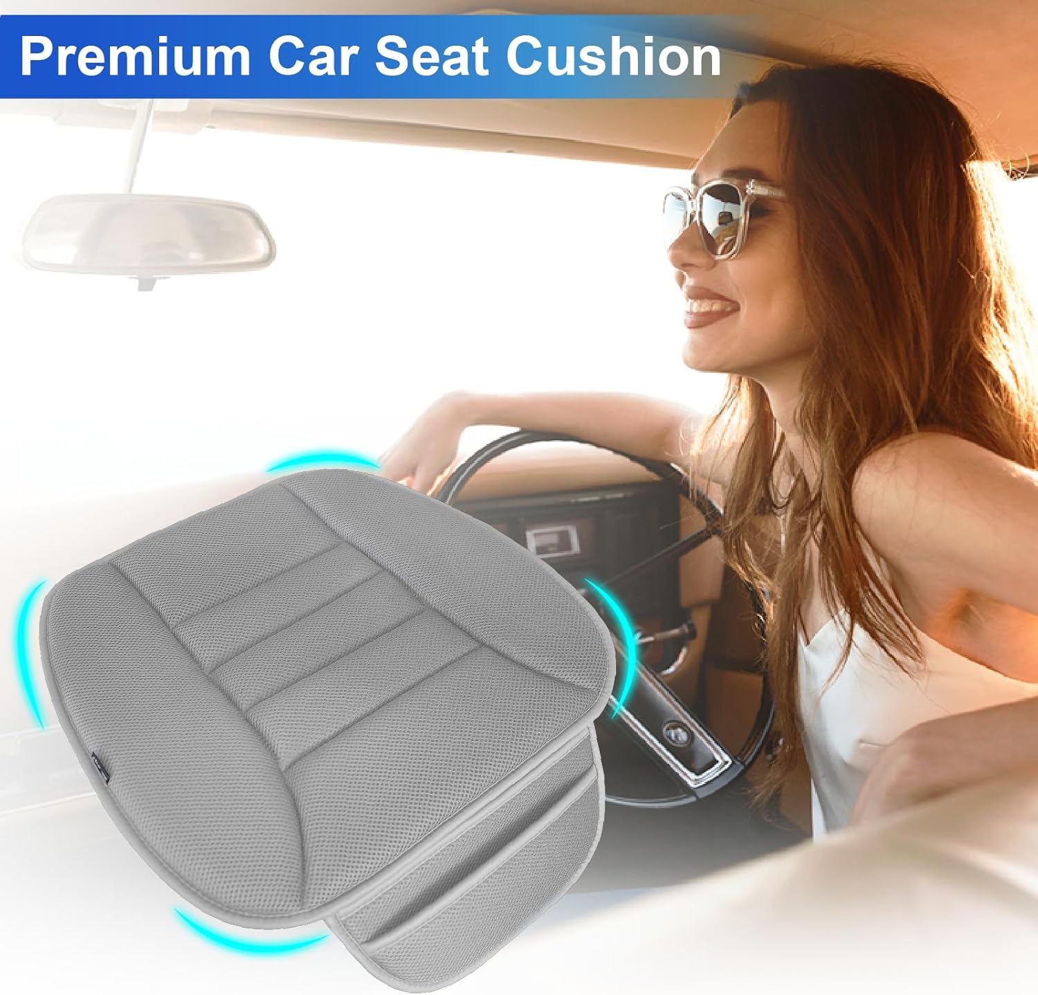 Car Seat Cushion, Driver Cushion with Comfort Memory Foam & Non-Slip Rubber Bottom, Car Seat Pad Works with 95% of Vehicles and Office Chair or Home - 4D Dark Grey