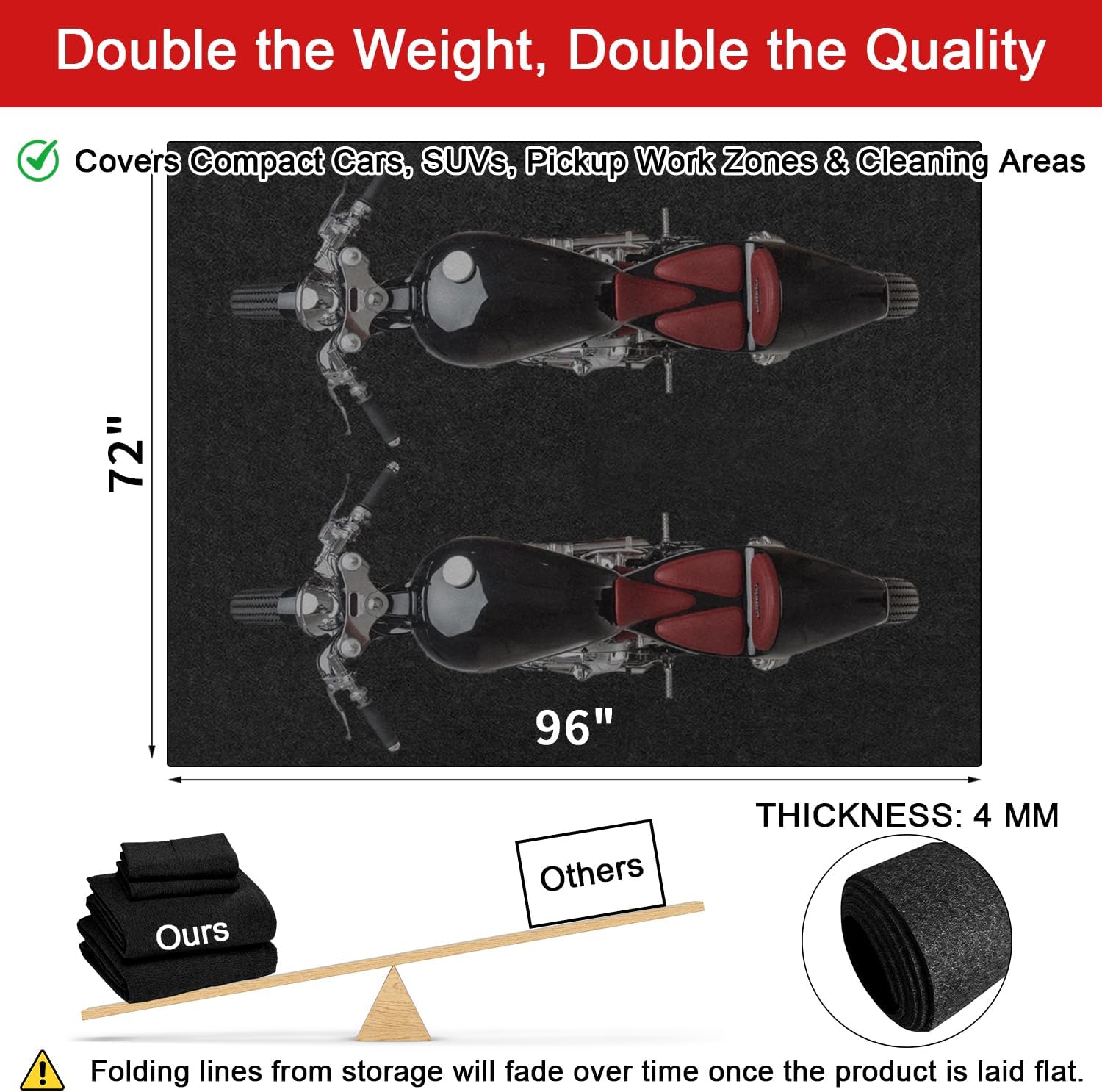 - Absorbent and Waterproof Protection: These garage floor mats absorb oil, brake fluid, and other automotive liquids, protecting your garage floor from stains and leaks. The slip-resistant, waterproof rubber backing keeps the pad rug in place, ideal for use under cars, motorcycle, and truck. Perfect for garage floor mats for under car, rubber floor mats, and driveway oil stain remover.