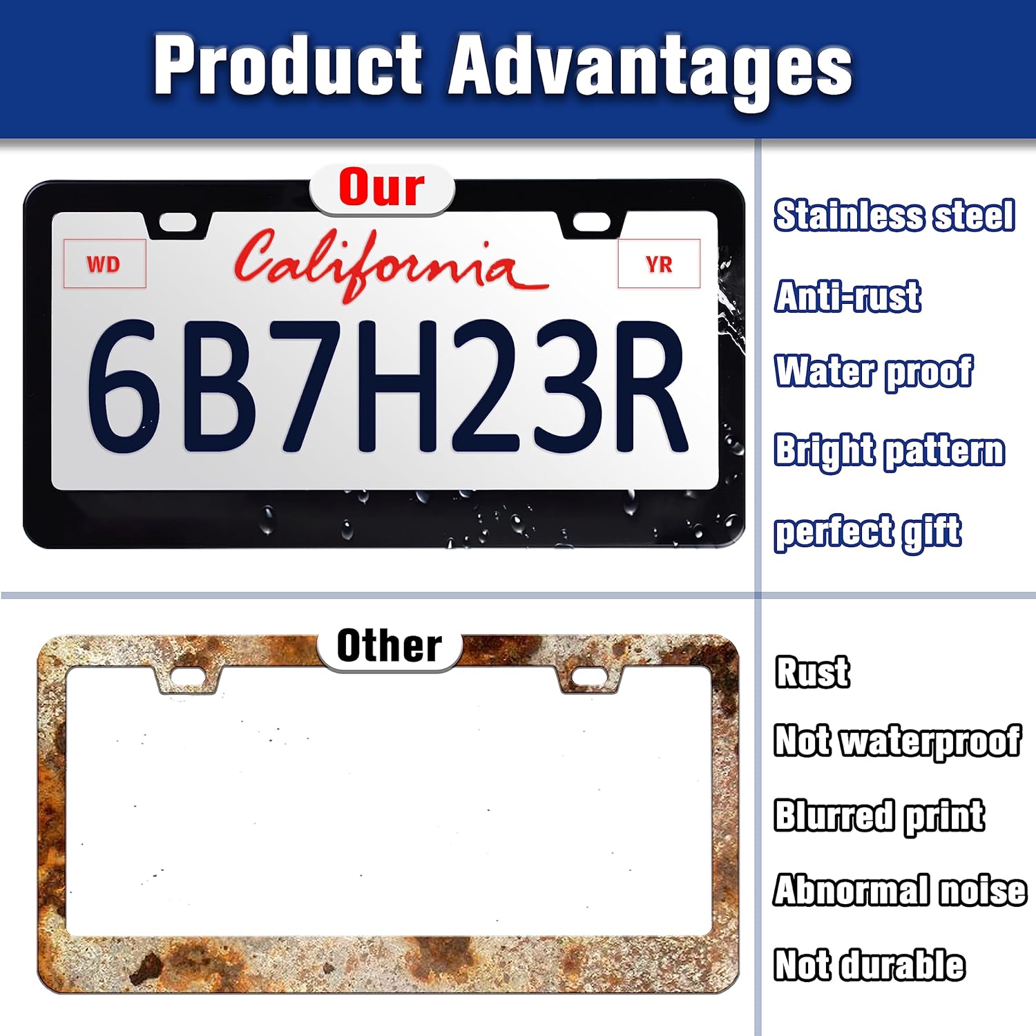 - Stainless steel material: The use of stainless steel license plate frame makes our products strong and safe, can withstand high and low temperature weather environmental temperature changes, very durable. Build Enduring Framework.