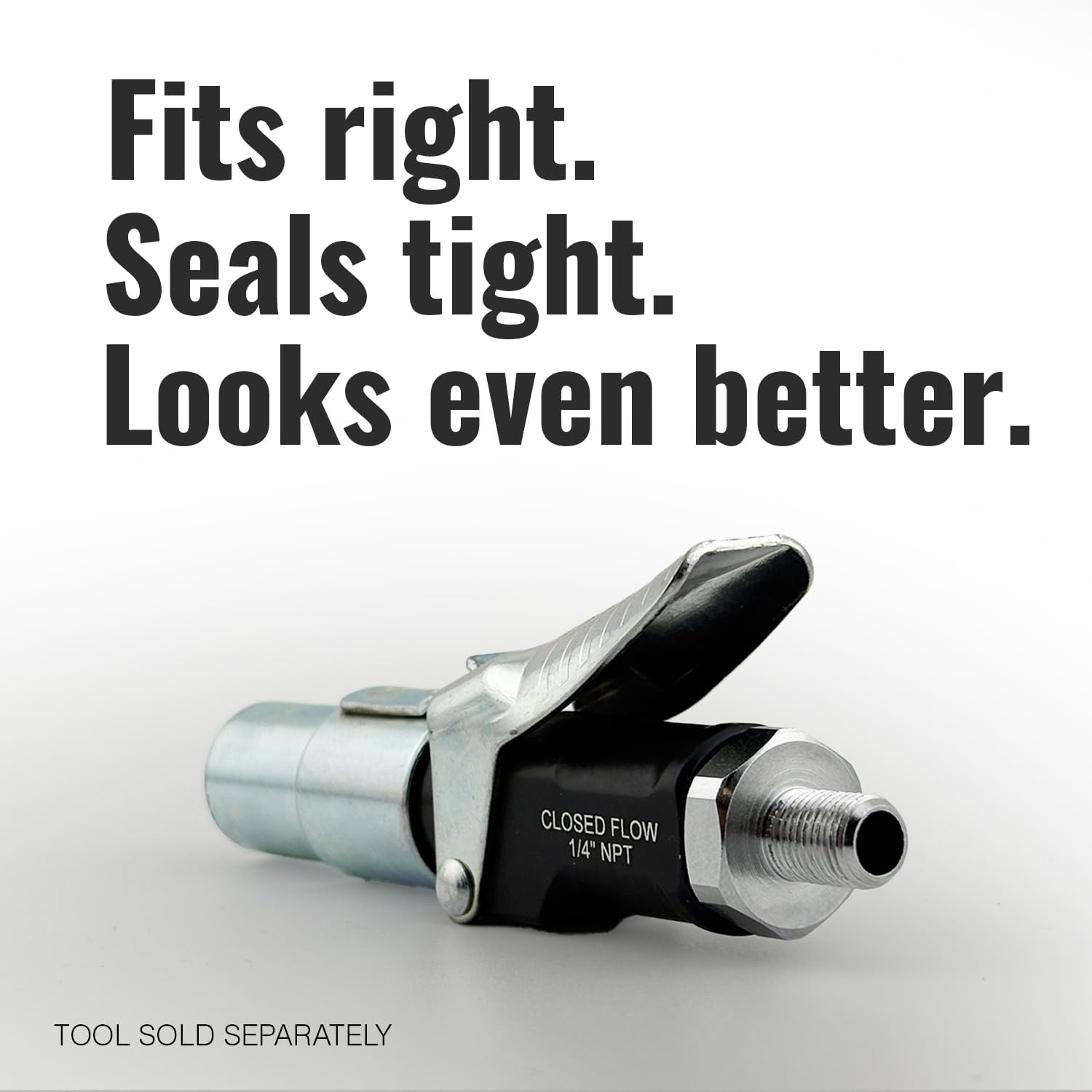 - CHROME FINISH THAT MATCHES YOUR TOOLS: Premium polished chrome ¼” NPT(m) adapter fits seamlessly with LockNFlate, Chuck Mates, Milwaukee, Milton, Haltec, and more.