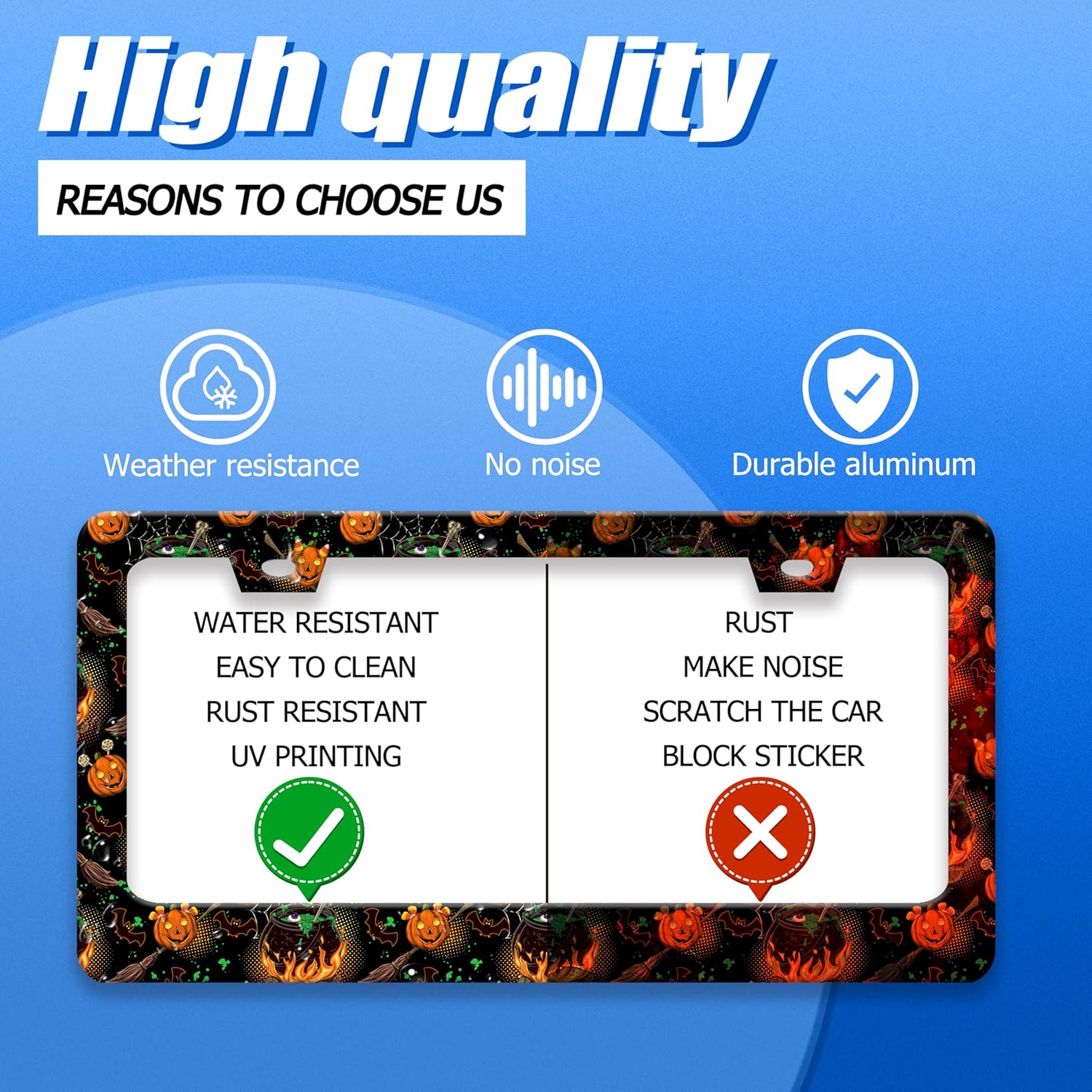 Halloween License Plate Frame Pumpkin Bats License Plate Stainless Steel Funny License Plate Holder for Men Women Universal Colorful Car Accessories Decoration 12.3" x 6.3"