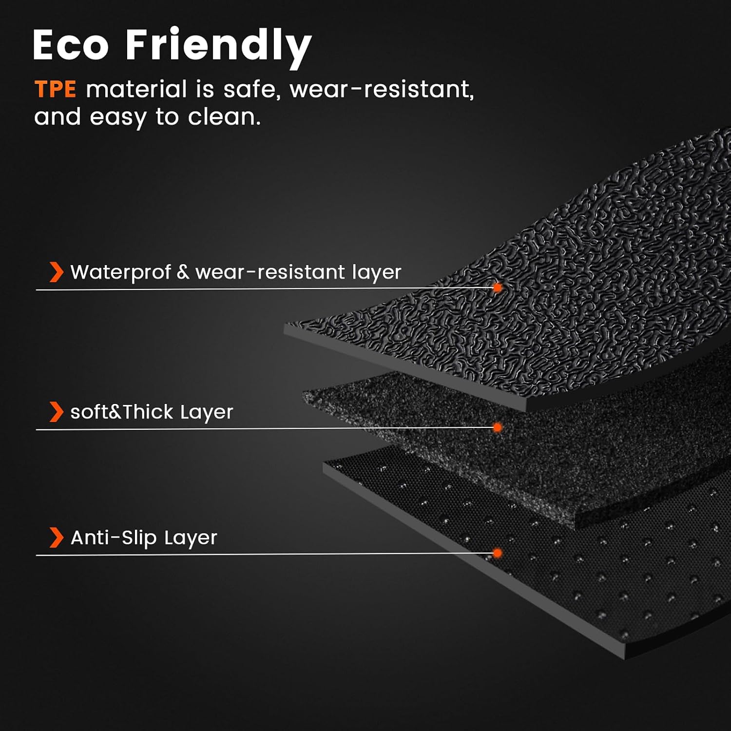 - "ăHeavy-Duty & Odorlessă Upgraded eco-friendly TPE retains flexibility in -40°F~200°F, zero chemical smell even in hot weather. 3X more abrasion-resistant than rubber mats.3D anti-slip texture, anti-slip, anti-scratch, waterproof, dustproof."