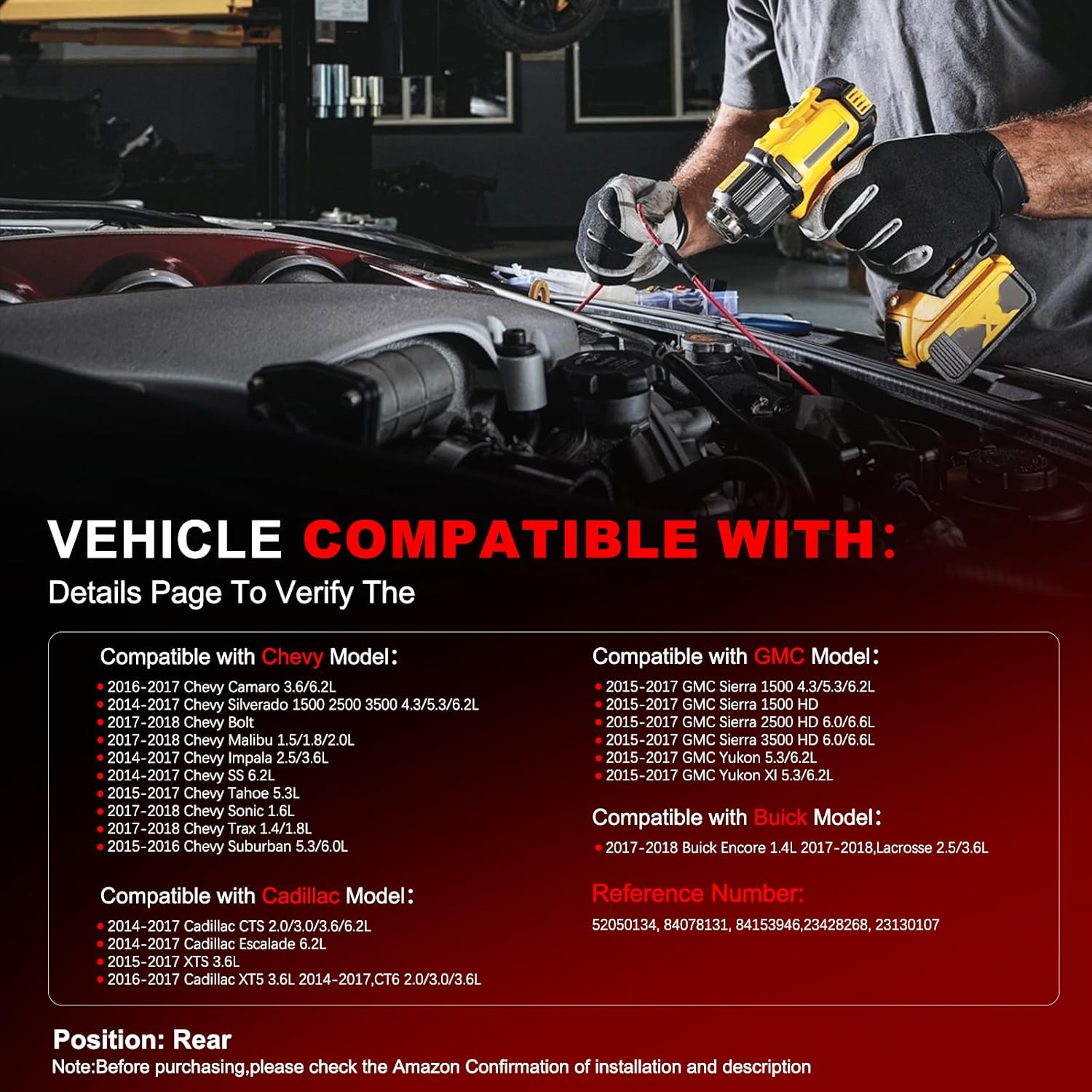 - Fitment:Parking aid sensor Compatible GMC Sierra 1500 2015-2017 4.3/5.3/6.2L,Sierra 1500 HD 2015-2017,Sierra 2500 HD 2015-2017 6.0/6.6L,Sierra 3500 HD 2015-2017 6.0/6.6L,Yukon 2015-2017 5.3/6.2L ,Yukon Xl 2015-2017 5.3/6.2L;Compatible with Cadillac CTS 2014-2017 2.0/3.0/3.6/6.2L,Escalade 2015-2017 6.2L,XTS 2014-2017 3.6L ,XT5 2014-2017 3.6L,CT6 2016-2017 2.0/3.0/3.6L;Compatible with Buick Encore 2017-2018 1.4L,Lacrosse 2017-2018 2.5/3.6L---Rear PDC Parking Sensors.Note:Before purchasing,please check the Amazon Confirmation of installation and description details page to verify the compatibility of this item with your vehicle.