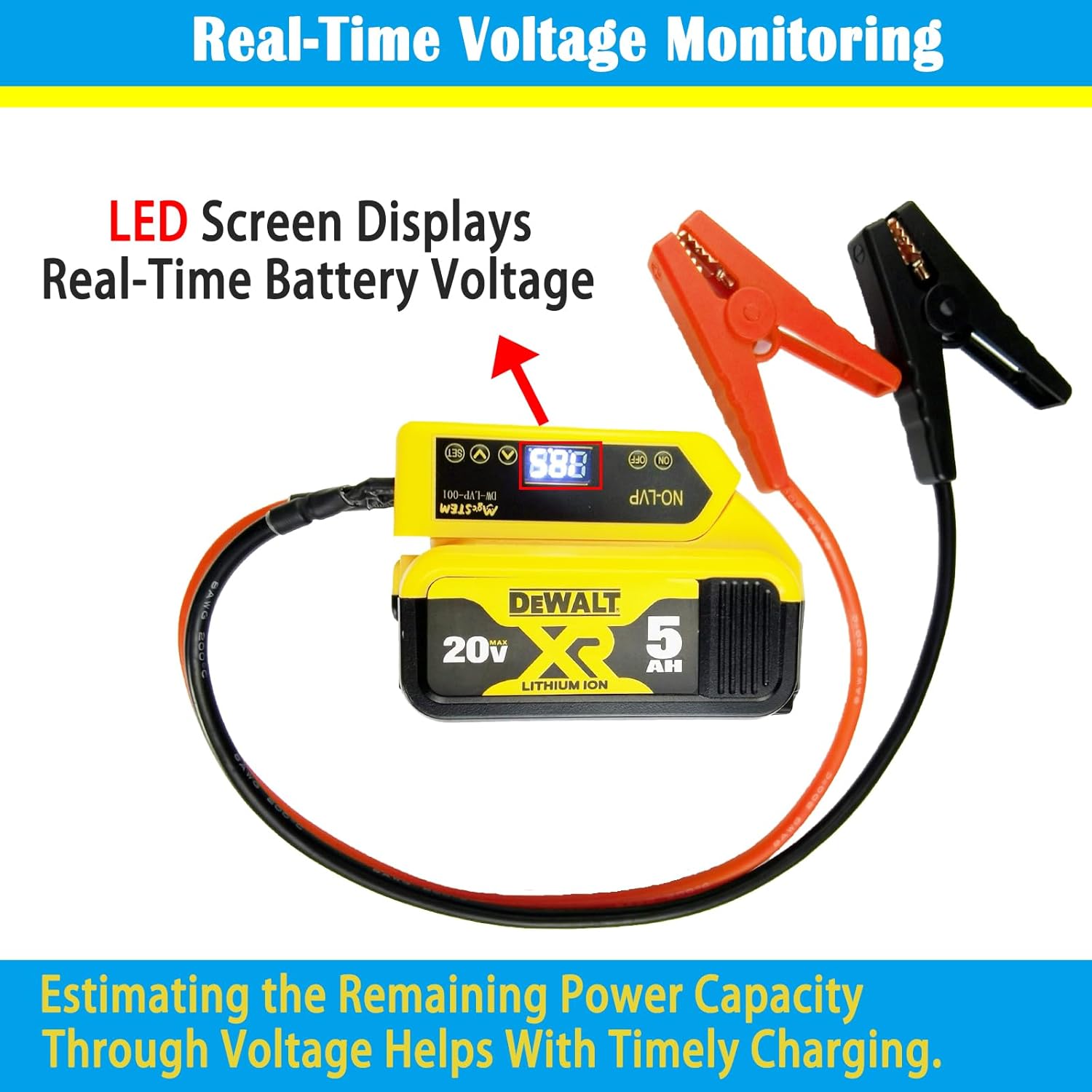 - ăLow Voltage Alarm Functionă When the voltage of the jump starter drops below the adapter's set value, this cable compatible with dewalt 20v jumper cable adapter will automatically issue an alarm to provide timely reminders and facilitate operation