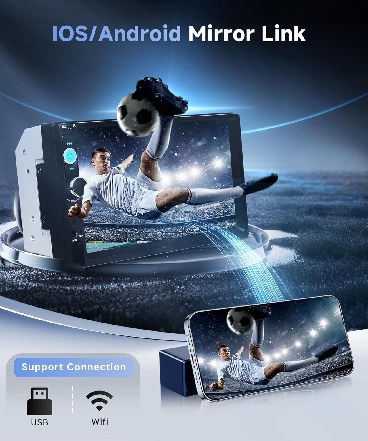 - 【Android/IOS Mirror Link】Car radio 2 Din with screen support Mirror Link for both Android and iOS smartphones, connect via car radio USB. After successful connection with the Mirror Link function, you can transfer the content of your cell phone to the screen of the car stereo. easy access to your phone functions such as messages, music, map navigation, videos, etc. Note: The stereo player is not a GPS device, it gets the GPS navigation function when connected to the phone.