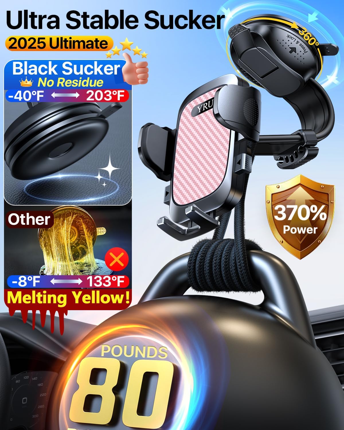 - 2025 Ultimate & High-End Car Holder, Trusted by 30,000+ Users: YRU 2025 upgraded car phone holder with 4 years of R&D passed 30,000+ users driving 900,000+ miles test, is a 3A-Grade reliable car mount, stable & durable. Got safely certified