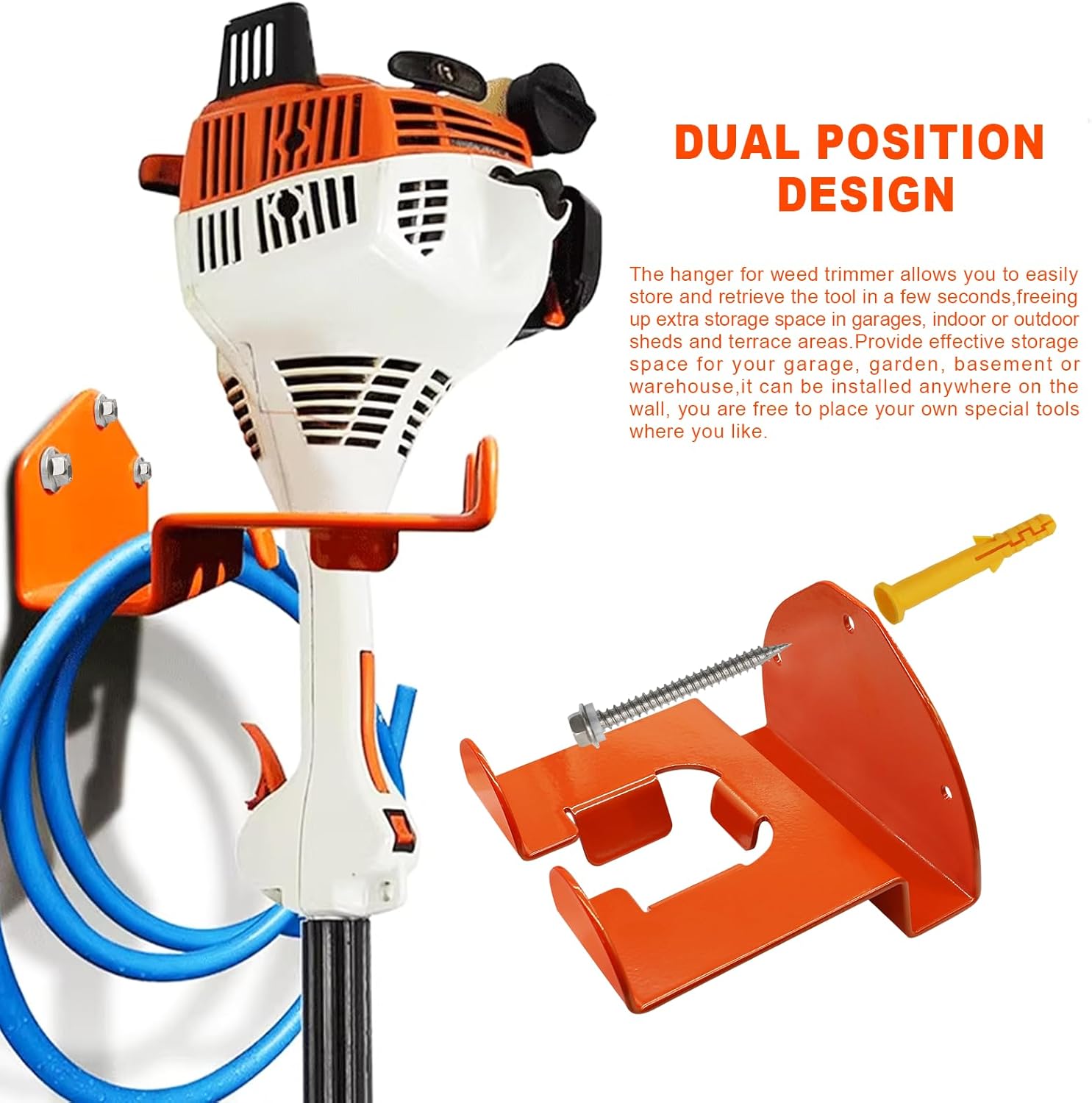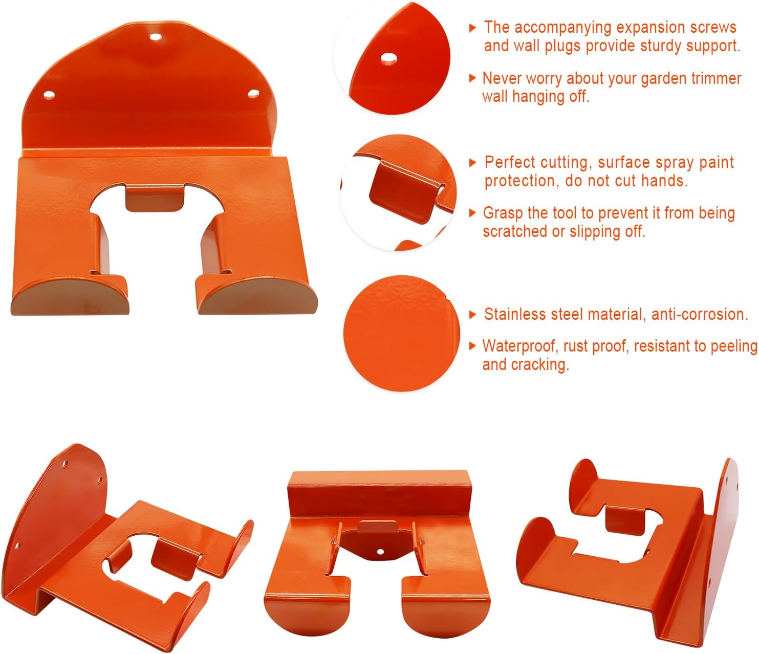 - 【Premium Materials】The weed eater wall mount is built from strong gauge steel, which is stronger and has high bearing capacity. The trimmer rack surface with orange ruber. Water-repellent and anti-rust, resistance to chipping and cracking.