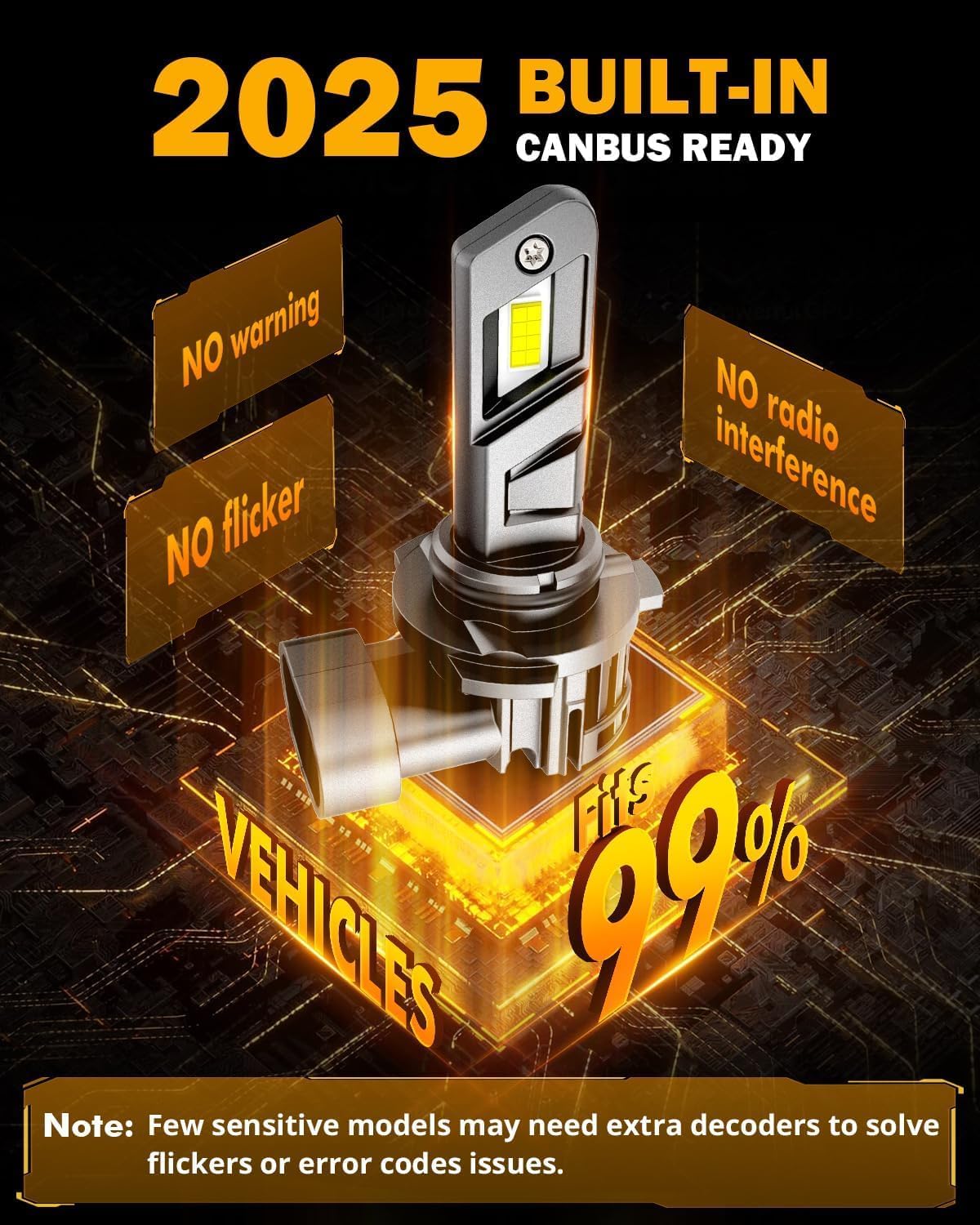 - 99% Super Compatible: Built-in intelligent decoding chips, highly compatible with 99% models' system without causing errors and flickers. Note:1% sensitive models still need decoders. Please message auxbeam to help slove the problem.