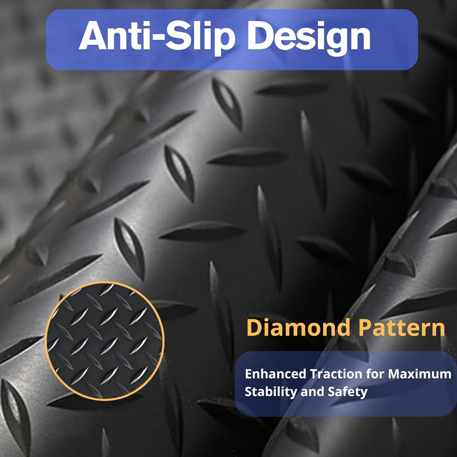 - Anti-slip Design:The rubber mats for garage floor features a diamond plate texture, significantly enhancing traction with the ground. Its surface grip becomes even stronger when wet, effectively preventing slipping incidents while delivering enhanced stability and non-slip protection.