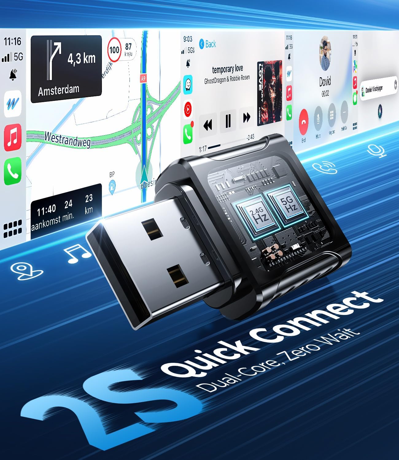 - ⚡【Dual-Chip Speed · Seamless Experience】Dual-band chipsets (2.4G + 5G) collaborate to deliver data latency as low as 5ms, rivaling the stability of a wired connection. Authentic car controls are 100% retained, eliminating the need to change operating habits—whether waking up Siri with your voice, swiping the touchscreen, or turning the stock car knobs—all controls are effortless. Wireless CarPlay seamlessly integrates with the factory system, allowing for smooth navigation, music switching, and call answering, immersing you in a seamless, factory-quality experience that feels like wireless is a built-in feature.