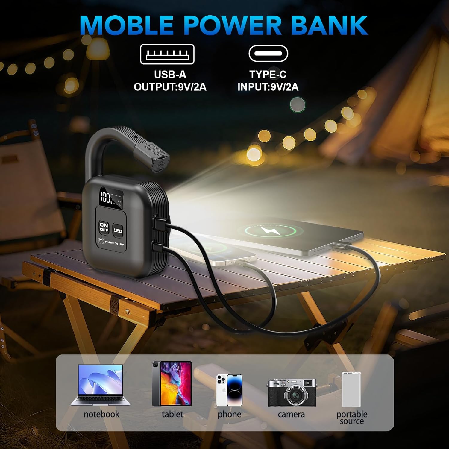 - Versatile LED Lamp Modes (White, Warm, Strobe, SOS) the integrated large lamp is a multi - functional tool. Long - press the power button to switch between bright white light (ideal for clear visibility during repairs) and warm light (perfect for creating a cozy ambiance during camping). Short - press for SOS mode to send out distress signals in emergencies, or strobe mode to alert others. A must - have for night - time troubles, outdoor activities, or roadside safety.
