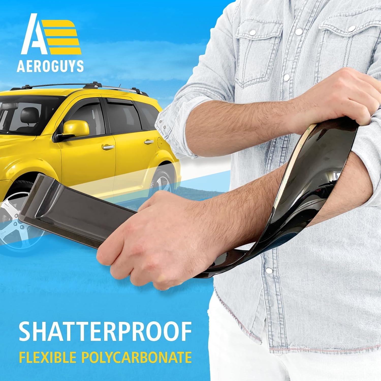 - Incredibly Durable AEROGUYS Auto Window Deflectors β They are made with strong and tough polycarbonate which is clear and scratch-resistant. They also provide UV protection making your ride more comfortable under all weather conditions.