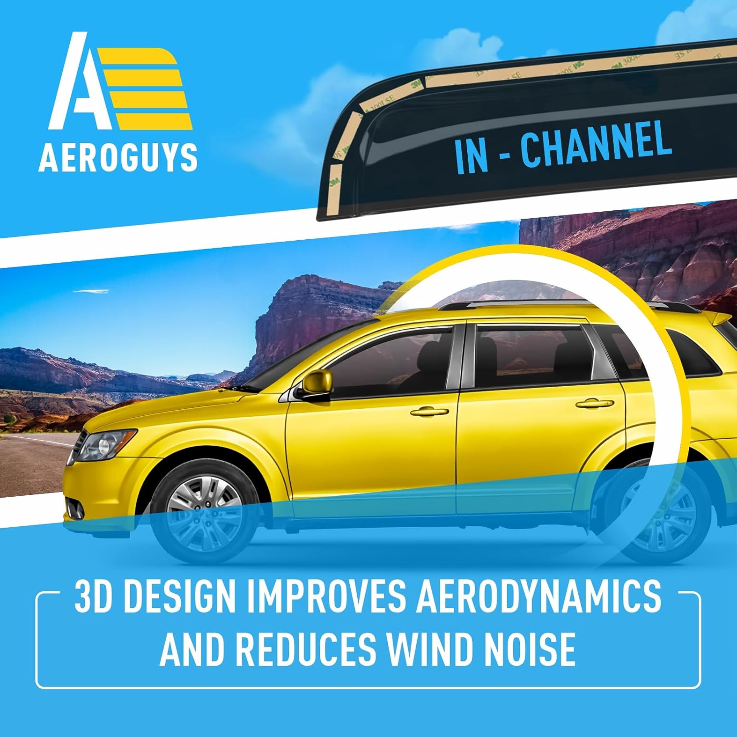 - No Tools Needed, Quick and Easy Assembly β These rain guards are very easy to fit. IN-CHANNEL INSTALLATION provides perfect fit for your car. Just slip it onto your carβs window and your job is done within minutes. There is no drilling or no tools required. Be sure that AEROGUYS window deflectors are water resistant, sun protective and will not bend, break or crack regardless of the weather conditions.