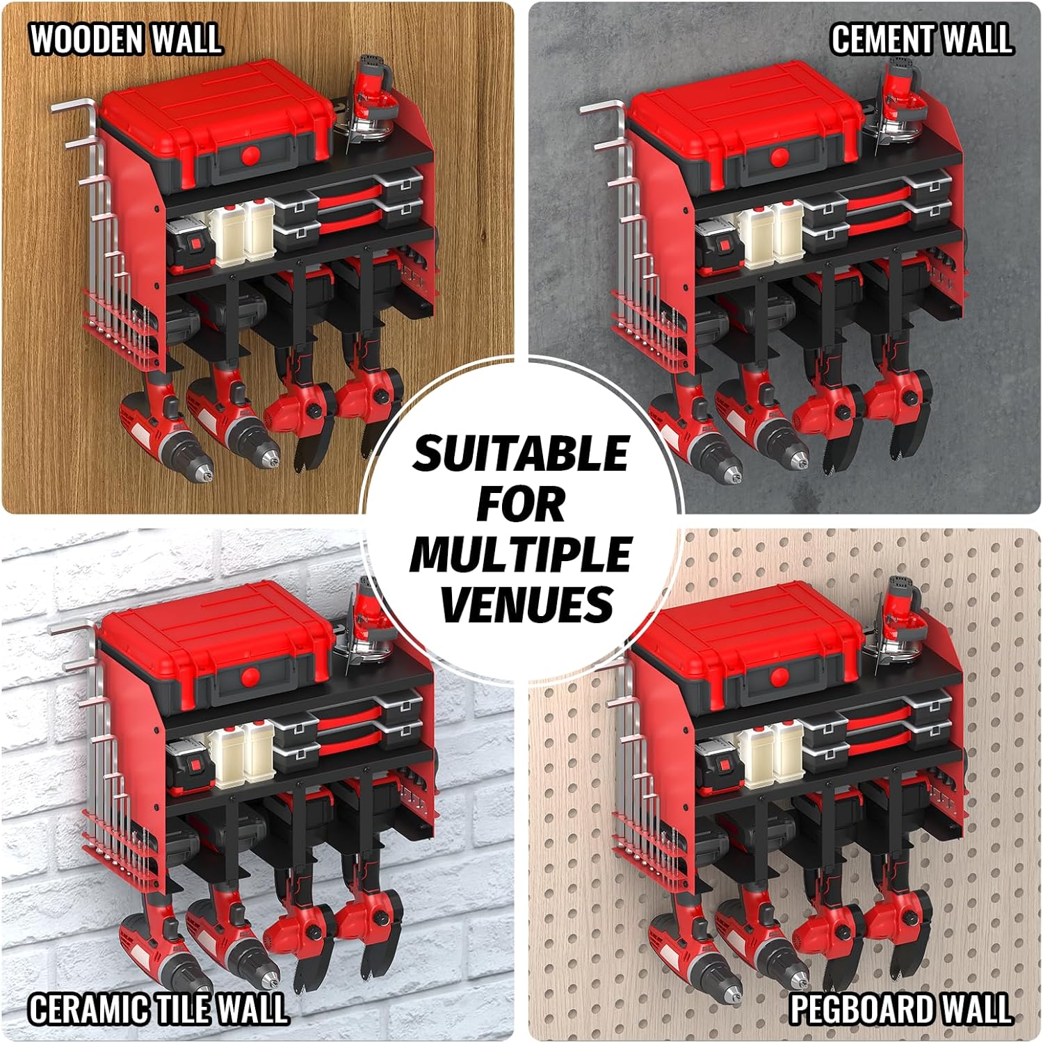 - BOTTOM FIXED THICKENED DESIGN: The bottom layer of the Tool organizer we use a wider fixed design, increasing the bottom of the bearing capacity, in the process of using the bottom of the power tool organizer wall mount is not easy to deformation and bending, unlike ordinary tool organizer, the bottom of only a hook design, easy to deformation and bending, Utility Racks Garage Storage & Organization Products.